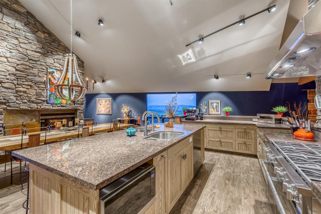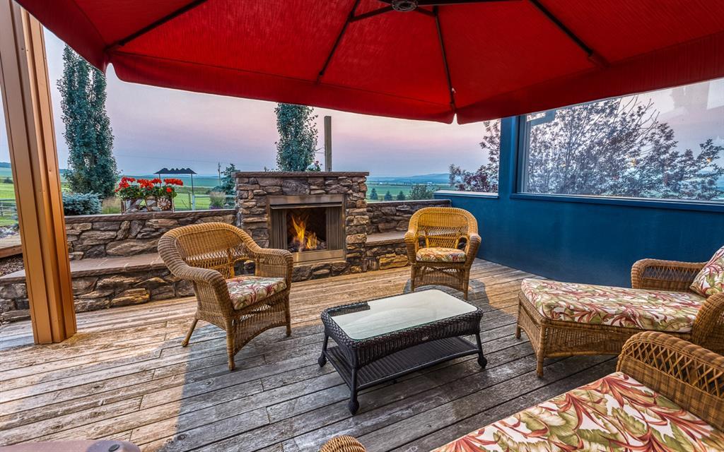 Simply spectacular this fully furnished original owner property features 5700 sq ft of developed living space. This gorgeous Jeremy Sturgess built & designed home sits on a scenic 65-acre plot just minutes west of Okotoks with the foothills framing a view of the Rockies. Reminiscent of a traditional alpine farmhouse complete with vehicle storage, stables & a tool shed all connected under a functional carriage way. The edgy design was purposeful in capturing the stunning 360-degree vistas from every room & unveils the patchwork of prairie fields rolling to meet the front ranges of the Rockies. The outdoor living space is sheltered behind the angular roof line perfectly protecting the courtyard area complete with a pavilion, hot tub, built in entertaining areas, gardens, pathways & surround sound speakers. Enter through the grand breezeway & prepare to be awed with the soaring vaulted ceilings & the cozy open/functional floor plan. On the main there are floor to ceiling windows meant to move the outside living space to the indoors & the grand stone double sided fireplace which separates the living room from the kitchen & eating spaces. Entertain in your gourmet kitchen with top-of-the-line appliances,10 ft Island, an abundance of counter & cabinet space & choose if you will dine along side the fireplace or in the Sunroom. The entire home features in-floor heat for our chilly winter nights. The private Master suite features views to the west, the pavilion & the outdoor living area. It features a luxurious ensuite, large walk-in closet & laundry. There is also a powder room & a large country mudroom to complete this level. Upstairs the 2 generous bedrooms feature work spaces with desks, Jack and Jill bathroom & one features a small tree house feel deck. Over looking the main floor past the willow handrails in the loft is a home office space, guest bedroom suite complete with living area & a full bath. At the end of the evening retreat downstairs to the Media room for a movie or entertain guests in the family/ games room. Pool, darts, poker & a cold beverage while enjoying your favorite sports on TV. The oversized triple garage has been transformed into the ultimate car enthusiast retreat with heated epoxy floors, custom cabinets & more. Outside attached through the carriage way is a heated 5 stall barn with rubber mats, waterers, loft, feed room, tack room & wash bay. There is an outdoor 125 x 250 ft sand ring for riding & all the grass & sand paddocks with shelters your horse’s hearts desire. With 55+ acres in crop and the horse paddocks newly seeded to perfect horse grass mixture the property could be close to self sustaining. The heated drive through 1500 sq ft shop has been designed to accommodate all equipment, feed, delivery trucks & supplies. Extensive irrigated landscaping allows for perfectly manicured grounds all around the home which is completely fenced with post & rail electric fencing. Simply Exquisite , just bring your suitcase and your animals !!!