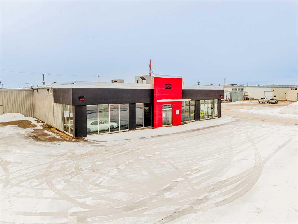 HIGH-VISIBILITY LOCATION ideal for an industrial retail or service user. This former car dealership features a front showroom, offices, two bathrooms, and a large shop with four overhead doors, along with a paved yard, rooftop HVAC units, and excellent access. Built in 1972 and renovated in 2005, the building is in good working order and positioned in a location that cannot be missed, offering strong exposure and functional warehouse capability.