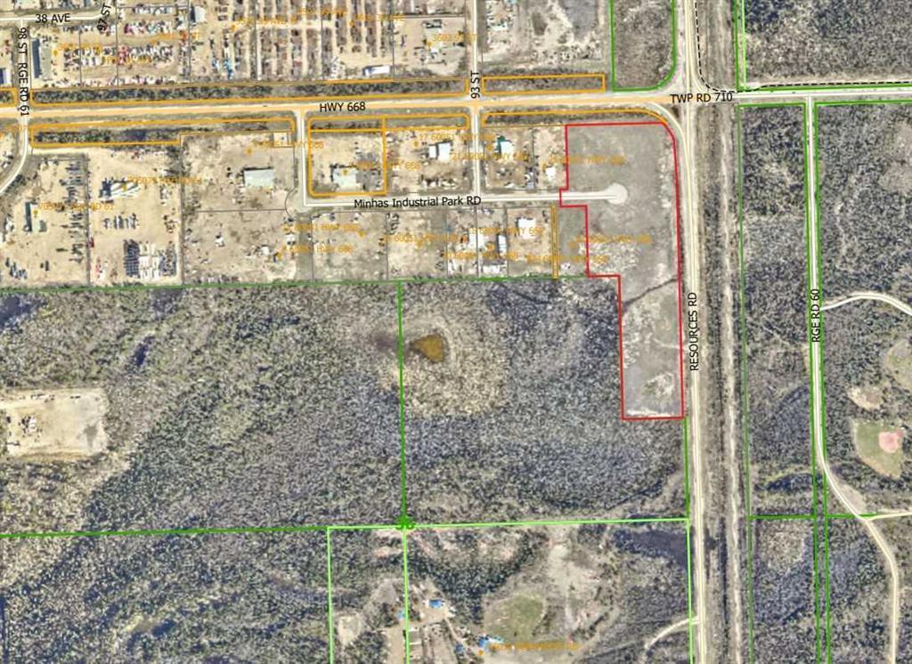 BUY ALL THE FRONTAGE WHERE 668 AND RESOURCES CONNECT, 12.4 ACRES HIGHWAY FRONTAGE LAND FULLY SERVICED WITH WATER AND SEWER OFFERED @$260,000/ ACRE ZONED RM2 INDUSTRIAL! ( UP TO 16 ACRES AVAILABLE!). Located in the County of Grande Prairie and serviced with city water and sewer, power, natural gas, and Telus fiber optic internet, this site is exceptionally well suited for industrial, oilfield, and forestry service companies operating across Northern Alberta. Fronting Secondary Highway 668 and approximately two miles from Highway 40, the property provides efficient access to the Montney Formation and Alberta Deep Basin, including the active Kakwa, Gold Creek, and Karr areas. Full municipal services eliminate the need for wells or septic systems, while high-speed fiber connectivity supports modern industrial operations, remote monitoring, and data-intensive applications. Positioned within South Grande Prairie’s established and rapidly growing industrial corridor, this location offers long-term value and strong demand fundamentals. Parcels can be subdivided to suit, with an estimated 60-day timeline to title. For buyers requiring immediate development, additional parcels are available to the west including 4.02 acres, 4.95 acres, and 8.8 acres, several of which are already fenced and partially graveled and ready for construction, priced at $225,000 per acre. An additional 6-acre parcel connected to the highway frontage land is also available unserviced at $125,000 per acre, providing further flexibility for future expansion within Mihas Industrial.