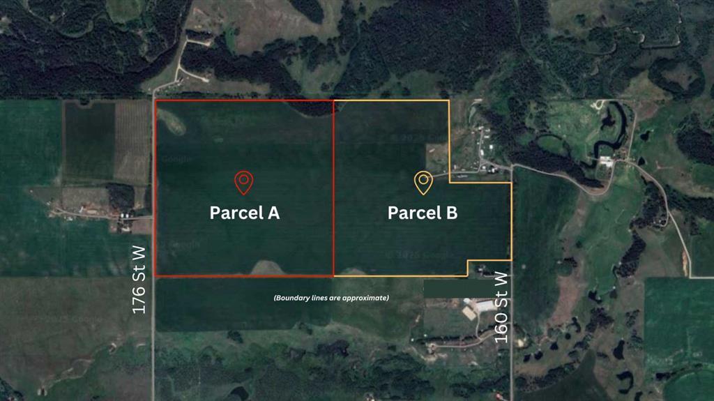 WELCOME to a UNIQUE opportunity (LESS THAN A MILE FROM CALGARY CITY LIMITS!!!) to own 127.28 ACRES of PRIME Land just off 160 Street W (Straight NORTH of HIGHWAY 22X), brimming with POTENTIAL for development!!! Parcel B in the cover photo is the parcel listed here. Whether you're looking to develop, conserve, or diversify, this SUBSTANTIAL TRACT offers REMARKABLE FLEXIBILITY to bring your VISION to life!!! Diverse terrain for future zoning, utility setups, or land use adjustments. Ideal for Agriculture, Recreation, or long-term APPRECIATION; this Land can adapt to your needs while remaining a VALUABLE ASSET. Just a short drive WEST of CALGARY, this property contains SERENE NATURAL BEAUTY w/CONVENIENCE of nearby city access, making it an EXCEPTIONAL opportunity for those seeking a VERSATILE development potential in a DESIRABLE location. EASY ACCESSIBLE via PAVED roads leading directly to the property. There are 3 ROBUST water wells, each delivering 10 gallons per minute (GPM), ENSURING a RELIABLE water supply. The GENTLY rolling terrain with SCENIC VIEWS of the nearby MOUNTAINS adds SIGNIFICANT appeal to any future development plans. ENJOY the PANORAMIC VIEWS, creating an ideal setting for RESIDENTIAL, RETREAT SPACES, or even RECREATIONAL uses. It can be PERFECT for future subdivisions or COUNTRY ESTATE potential. With the 3 STRONG water wells in place, + PAVED road access, the land is PRIMED for various uses, whether Residential, Agricultural, or Eco-Friendly Tourism. This is an unparalleled combination of SOUGHT-AFTER Mountain Views, Proximity to Calgary, + Robust water access, making it a RARE GEM for anyone looking to own a SIGNIFICANT piece of ALBERTA'S PRIME land. The Parcel adjacent to this one is also for sale by the same owner. Don't miss out on the chance to SHAPE this land into your DREAM!!!