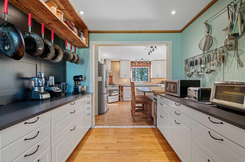 EXCEPTIONAL country residence with 2 homes on 32.17 acres. EASY ACCESS to Calgary + ONLY 6km from the future De Havilland site!! This MUST-SEE hobby farm offers an outstanding opportunity to jump into country living, with plenty of space for horses or other animals, or for possible future development! Greenhouses, dugout, irrigation canal with 35 acres of permanent irrigation rights + an existing garden centre on the site make this a dream property for the experienced or would-be horticulturalist. Not your vision? Then just think of the possibilities for repurposing all that infrastructure, or generating rental income!! The 2605 sq. ft, 2-storey home has been lovingly renovated throughout for comfort + style. The spacious, open plan main floor includes a modern, chef-inspired kitchen, living room with wood burning stove, dining room, laundry room, half-bath + large storage room. Upstairs there are 4 bedrooms, with 2 en-suites + a separate, full bathroom. The unfinished basement offers a further 1056 sq. ft. of potential for future development. Outside, the professionally landscaped yard comes complete with a patio, outdoor kitchen and pizza oven, all surrounded by mature trees. A peaceful oasis for enjoying the best of country living. A 1548 sq. ft. mobile home has 3 bedrooms + 2 bathrooms, kitchen, living room, laundry room, mud room + storage room. Perfect for family or rental income. Outbuildings include 2 quonsets, one of which contains 3 seacans set up for year-round growing + a spacious workshop. There are seven greenhouses (5 of which are heated and irrigated), + a retail garden centre building. 3 separate, fully fenced outdoor areas could be used as growing spaces, or as paddocks/pasture for livestock. Opportunities like this are few and far between, and this unique property comes with so many possibilities. Whether you’re looking for the peace and quiet of country living, a place to raise horses or livestock, an exciting business opportunity or the chance to generate some passive rental income, this place has it all. The garden centre space comes with a website, online store, loyal customer base, wholesale customer list and more. This property comes as is, and includes all garden centre, growing and nursery supplies and Inventory. Don’t miss out - Book your Private showing NOW!!