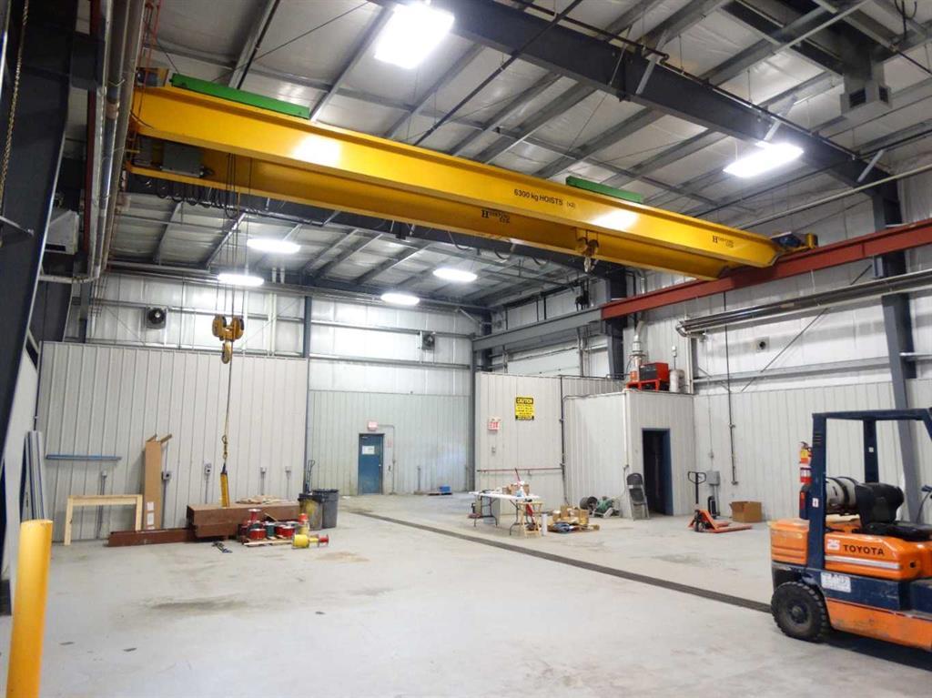 Click brochure link for more details. Functional shop facility with 2 points of access/egress & drive around capabilities. Located in Richmond Industrial District in close proximity to Grande Prairie Airport with excellent access to Highway 40, Highway 43, and Highway 2. The property consists of 2 cranes, 6 grade doors, 20" clear ceiling height, wash bay, double compartment sump, make up air, air-conditioned office and a fenced yard compound. Also available for lease at $13.85+ PSF.