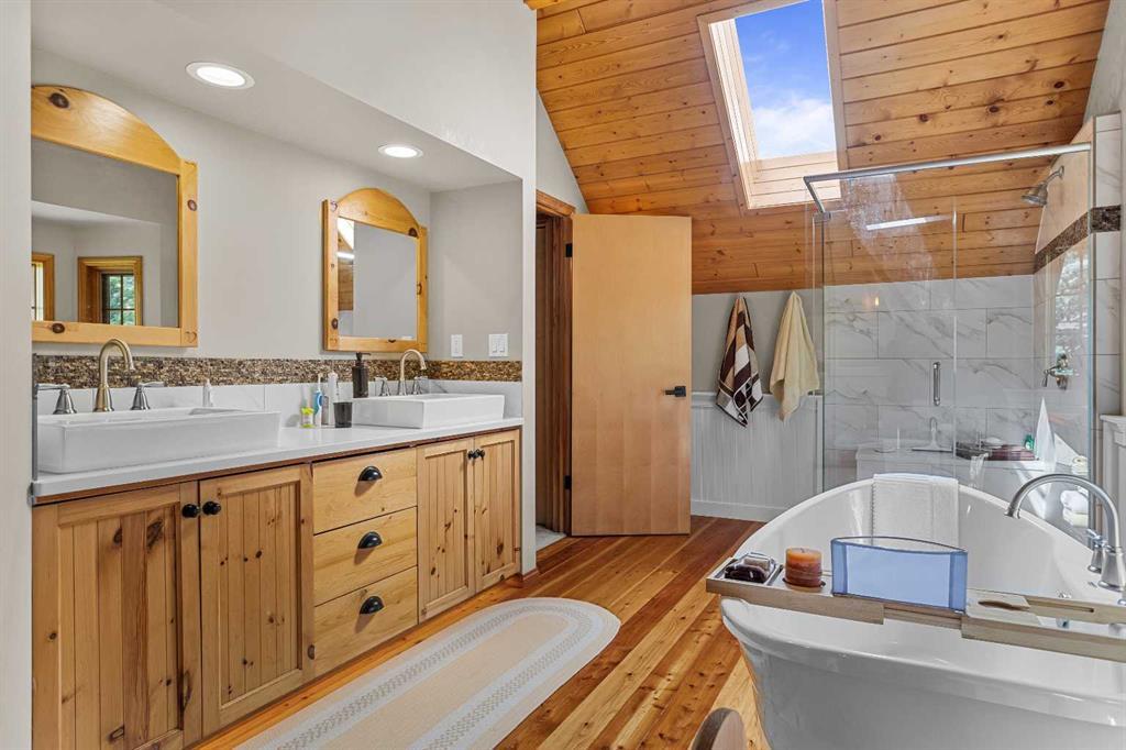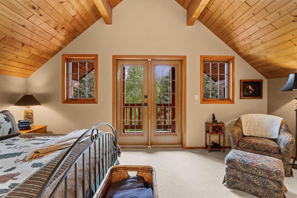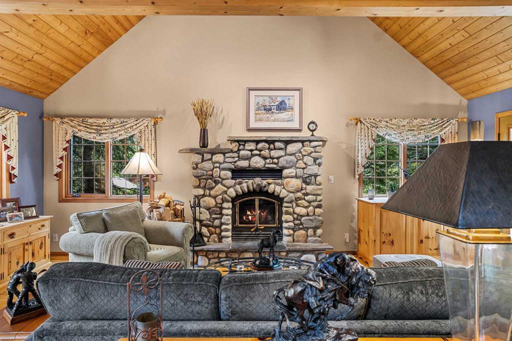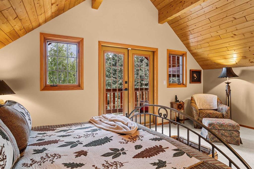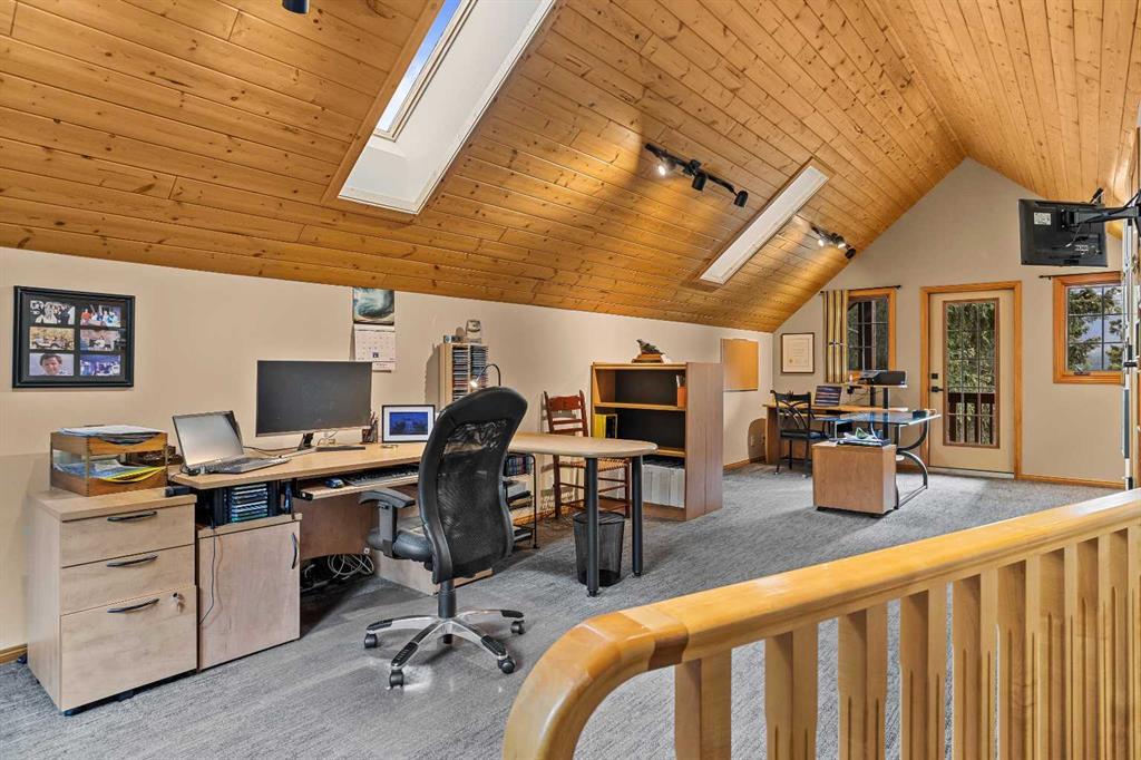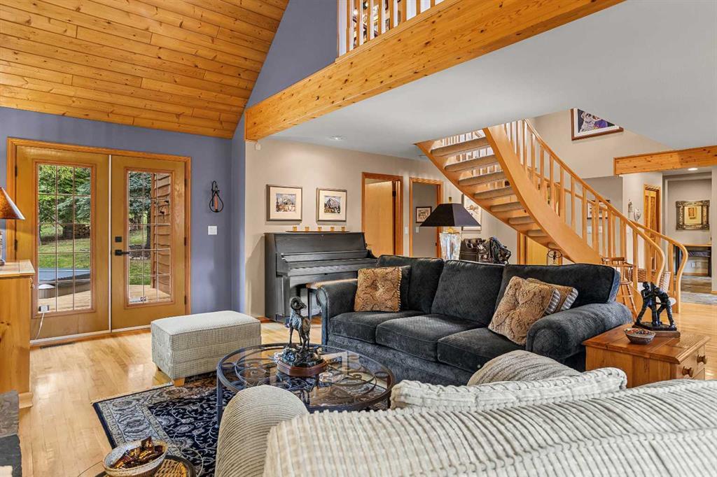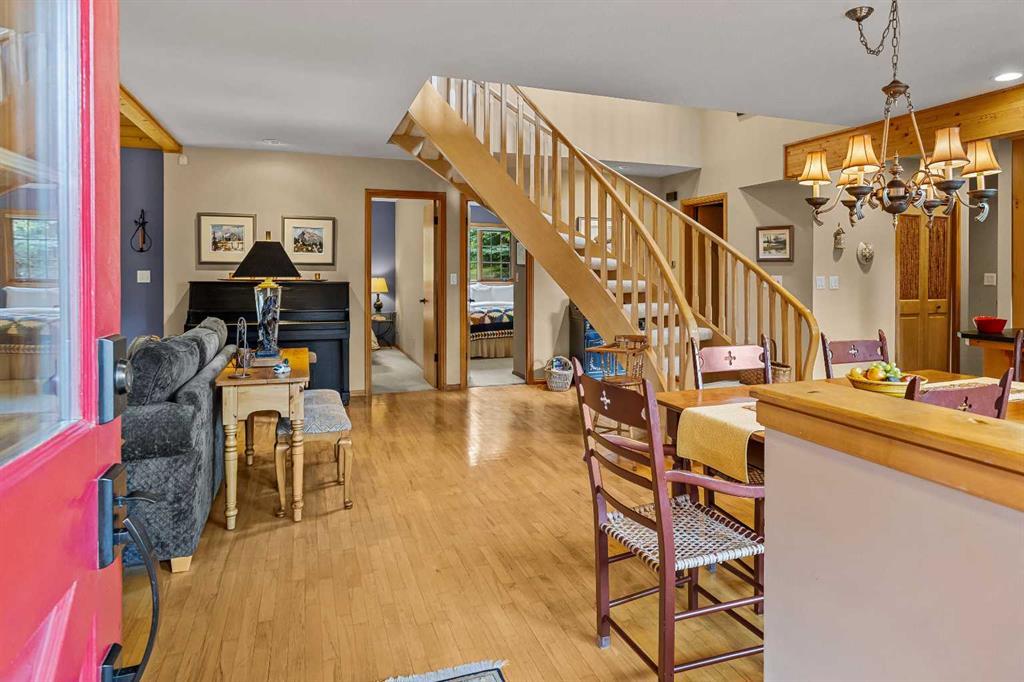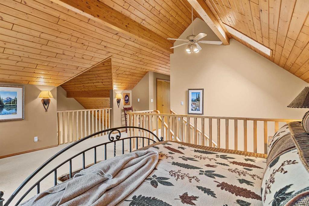 Exempt from the foreign buyer ban, this exquisite mountain estate is quietly nestled in the serene hamlet of Harvie Heights, just minutes from the heart of Canmore. Set on a beautifully landscaped 11,250+ sq.ft. lot and surrounded by mature trees and mountain vistas, this is a rare opportunity to own a private alpine escape. Blending rustic charm with refined comfort, the home features vaulted ceilings, rich hardwood floors, and a spiral staircase that adds architectural elegance to the warm, wood-accented interior. The thoughtful layout includes 4 bedrooms and 3 bathrooms, plus a spacious lower-level family room, and additional storage — ideal for future customization. Four sun-drenched sundecks invite you to relax and take in the sweeping views, while a tandem double garage provides ample space for vehicles and gear. One of the few properties still eligible for foreign ownership, this mountain sanctuary is a truly rare offering in today’s market.