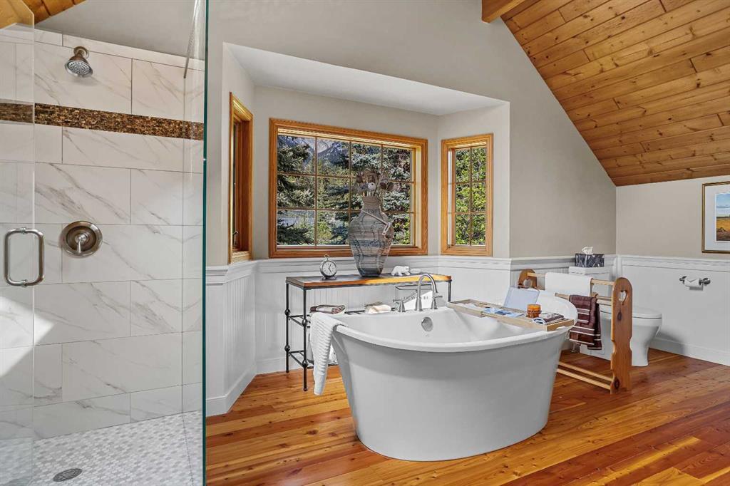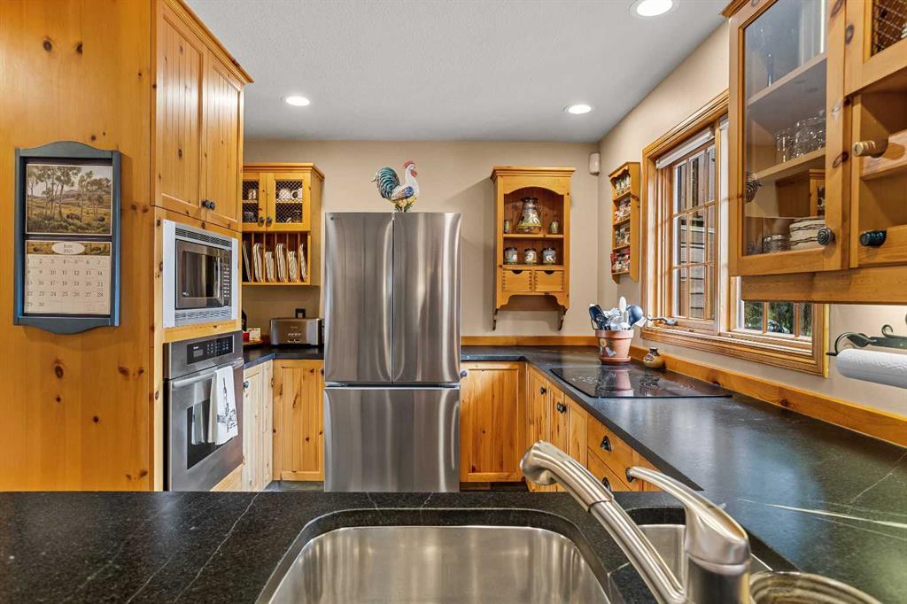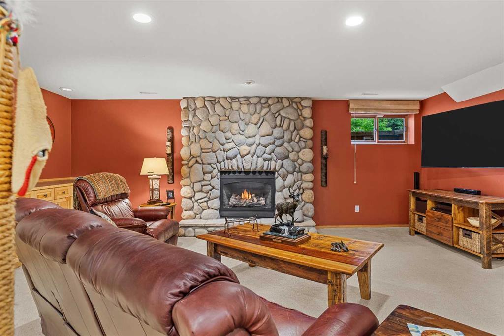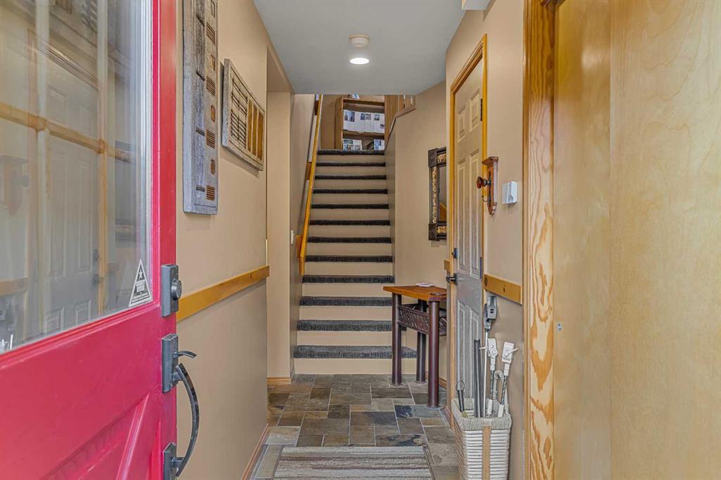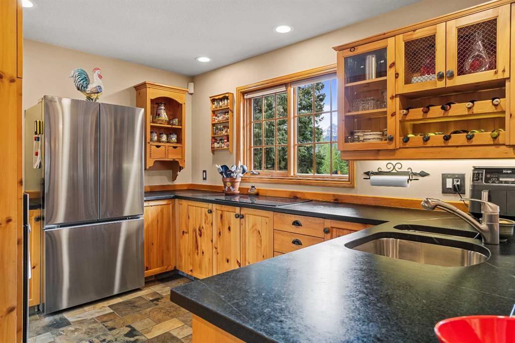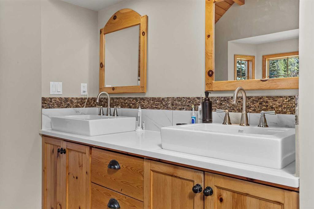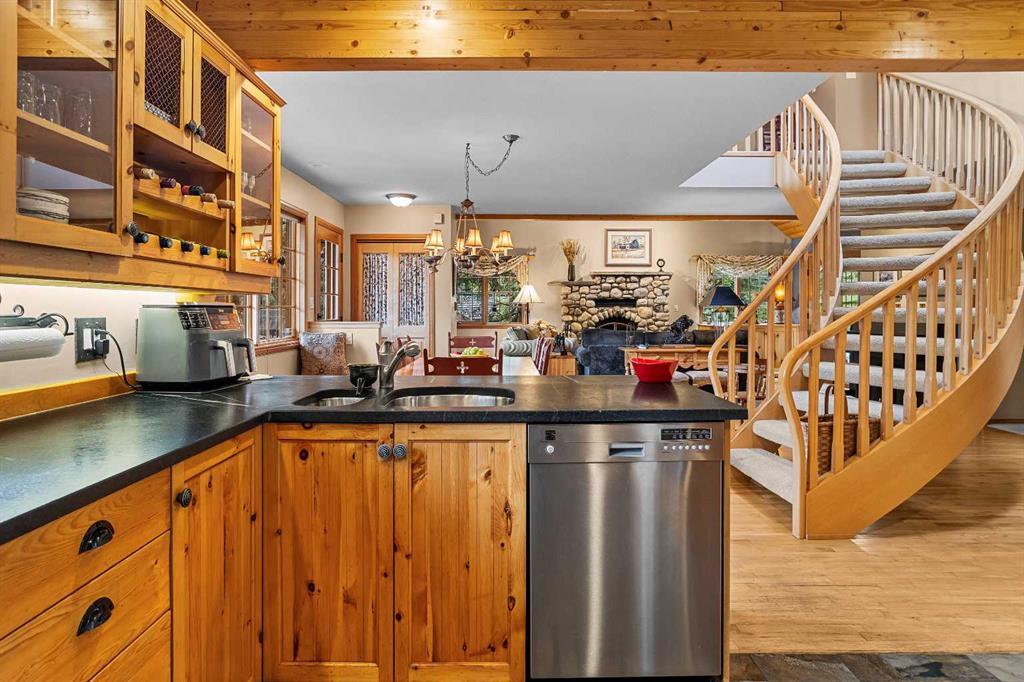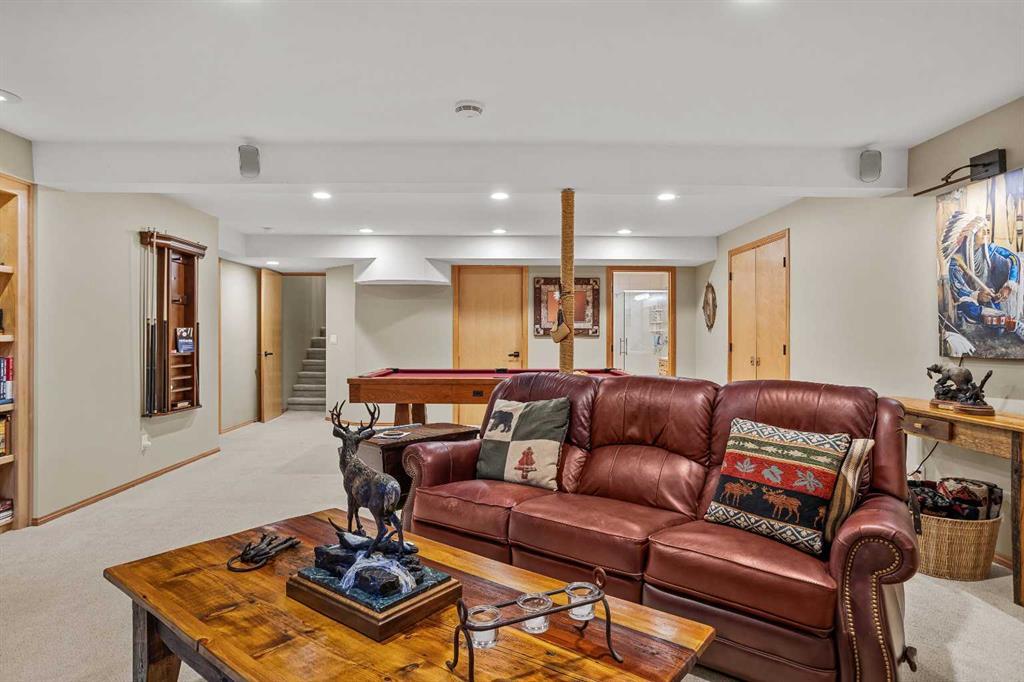 Exempt from the foreign buyer ban, this exquisite mountain estate is quietly nestled in the serene hamlet of Harvie Heights, just minutes from the heart of Canmore. Set on a beautifully landscaped 11,250+ sq.ft. lot and surrounded by mature trees and mountain vistas, this is a rare opportunity to own a private alpine escape. Blending rustic charm with refined comfort, the home features vaulted ceilings, rich hardwood floors, and a spiral staircase that adds architectural elegance to the warm, wood-accented interior. The thoughtful layout includes 4 bedrooms and 3 bathrooms, plus a spacious lower-level family room, and additional storage — ideal for future customization. Four sun-drenched sundecks invite you to relax and take in the sweeping views, while a tandem double garage provides ample space for vehicles and gear. One of the few properties still eligible for foreign ownership, this mountain sanctuary is a truly rare offering in today’s market.