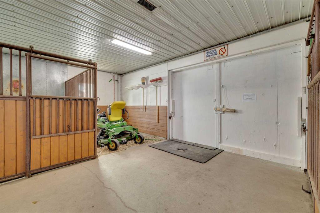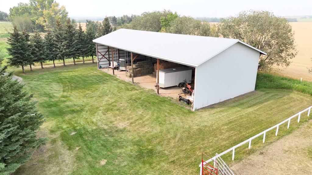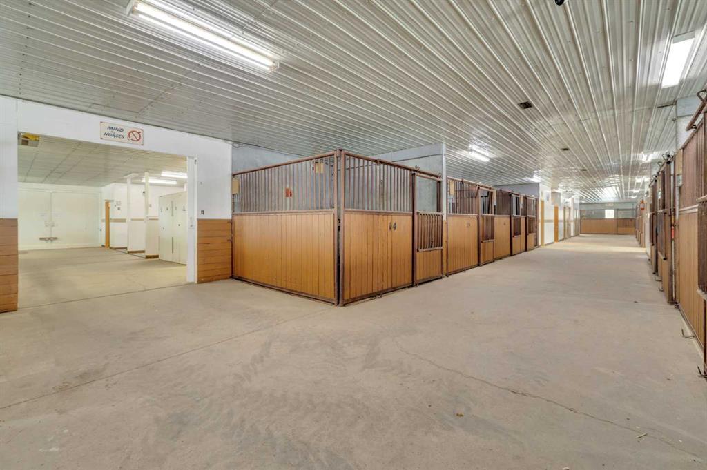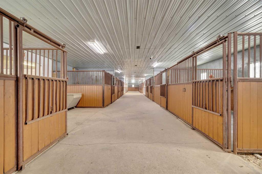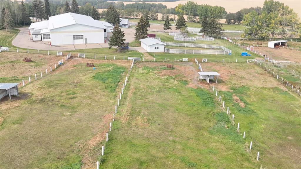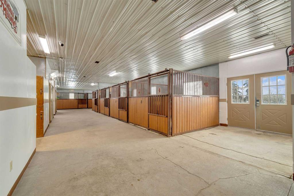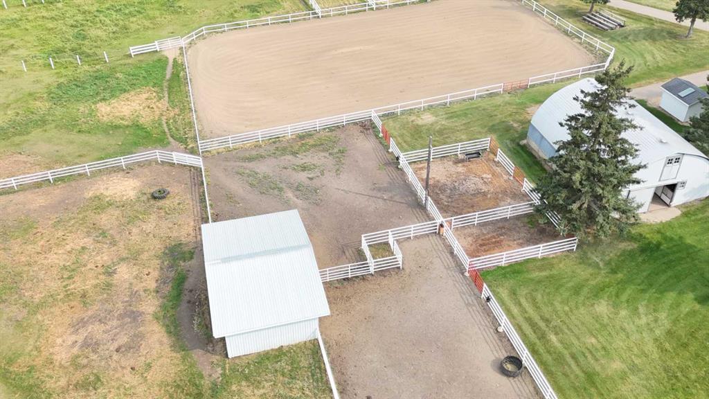Springvale Meadows is a fully developed, infrastructure-rich equestrian estate purpose-built for professional training, boarding, and year-round operation. The scale of improvements and established land base provide a comprehensive facility in a prime central Alberta location. At the center of the property is an approximately 20,800 square foot heated indoor riding arena designed for all-season use. The facility includes a large riding surface, 19 permanent stalls, wash bays, tack areas, office space, and an elevated viewing lounge with integrated suite accommodations (approximately 1,740 square feet). LED high-bay lighting has been installed, and the building includes emergency generator connection capability. Arena footing is professionally maintained on an approximate four-year cycle. Additional infrastructure includes a quonset-style barn with 7 overflow stalls, multiple paddocks equipped with shelters and automatic waterers, 14 individual round pens for structured training rotation, and two outdoor riding arenas to expand seasonal capacity. A 60’ x 100’ x 18’ hay shed provides substantial covered storage for feed and equipment. Secondary support buildings, extensive paved yard areas, and a gated entrance contribute to operational efficiency and year-round accessibility. The residence offers approximately 2,750 square feet of developed living space, positioned to maintain privacy while remaining integrated within the operational footprint. Mature landscaping, established shelterbelts, and a pond with cabin and dock enhance the overall setting. The 94.23-acre parcel includes approximately 70 cultivated acres currently under lease. Two producing water wells service domestic and livestock requirements. Zoning supports agricultural and equestrian uses consistent with existing improvements. This offering presents an opportunity to acquire an established equestrian facility with substantial existing infrastructure in place.