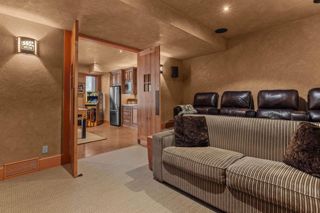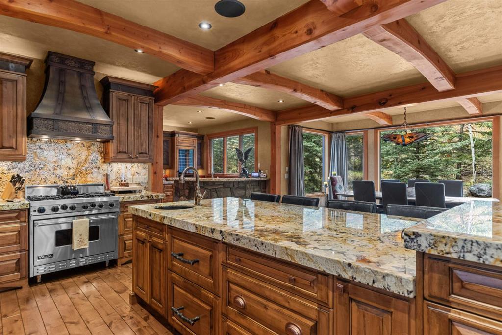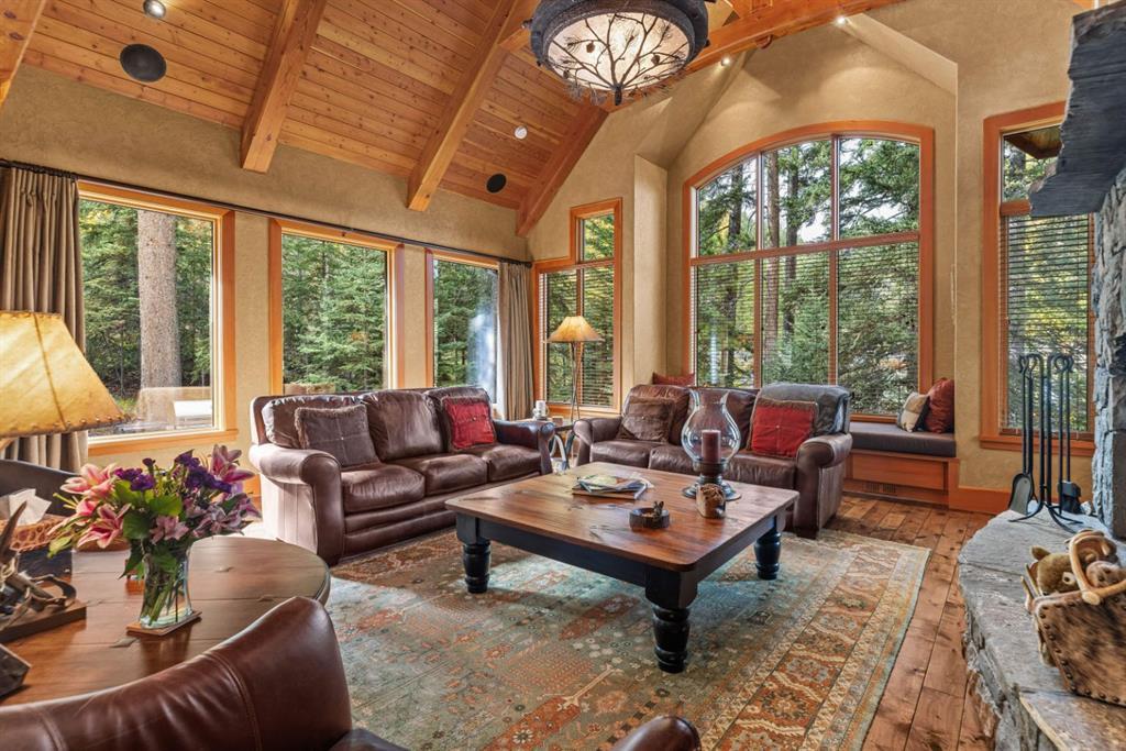 Located in Cairns on the Bow, just minutes from the gates of Banff National Park, this custom 4,000+ sq ft timber-frame residence offers a rare blend of privacy, warmth, and mountain character. Set on a beautifully treed 17,642 sq ft lot within Canmore’s only gated community, the home combines natural seclusion with exceptional craftsmanship. Inside, soaring fir-paneled ceilings and the timeless elegance of Italian plaster set a warm and sophisticated tone throughout. The open-concept layout seamlessly connects the principal living spaces, ideal for both intimate family moments and grand entertaining. The great room is anchored by a striking Rundle stone wood-burning fireplace, creating a natural gathering space that radiates warmth and character. The kitchen pairs custom cabinetry with Sub-Zero and Viking appliances, thoughtfully designed for everyday living and effortless entertaining. The primary suite offers a peaceful retreat with treetop views and a spa-inspired ensuite finished in Marinace granite and travertine, complete with a jetted tub. Additional highlights include two spacious guest bedrooms, a home theatre, a versatile recreation room, a dedicated home office, and a custom bar — offering flexibility for family and guests alike. Outdoors, professionally landscaped grounds feature natural stonework, a built-in BBQ, and a cozy fire pit, creating the perfect setting for year-round mountain living. A rare opportunity to own a timeless timber-frame home in Cairns on the Bow, where privacy, nature, and thoughtful design come together in perfect harmony. https://163cairns.info/