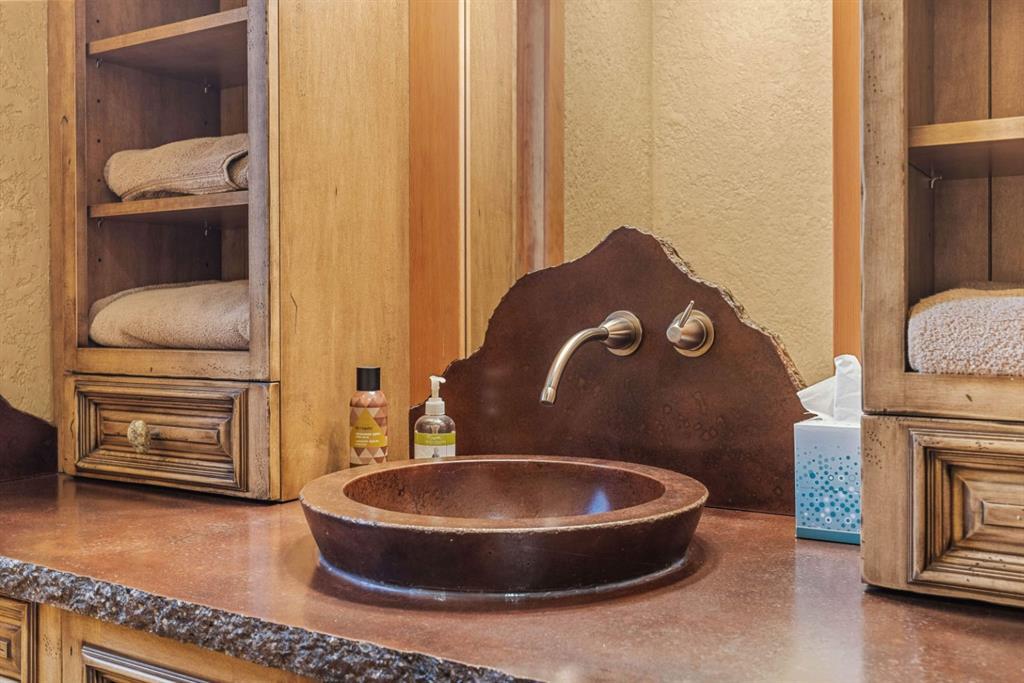 - Bookcases, Breakfast Bar, Double Vanity, Granite Counters, High Ceilings, Jetted Tub, Kitchen Island, Open Floorplan, Vaulted Ceiling(s), Walk-In Closet(s), Bar, Beamed Ceilings, Chandelier, Natural Woodwork