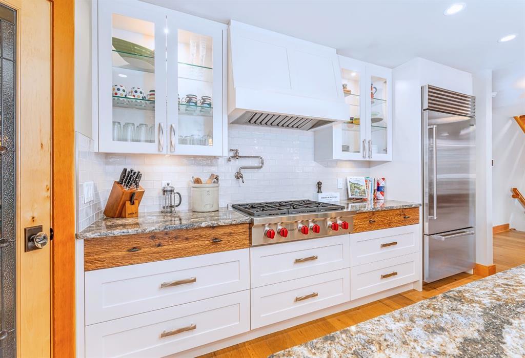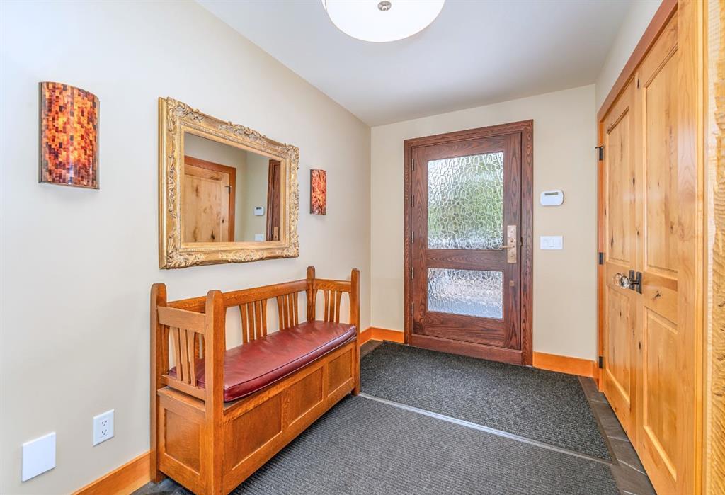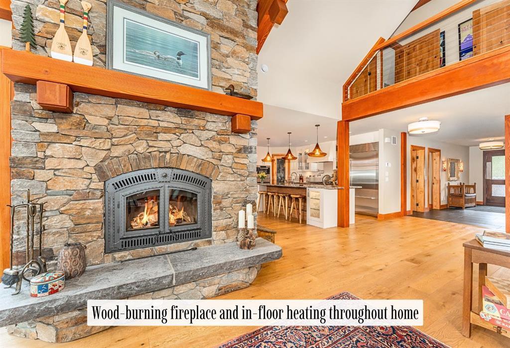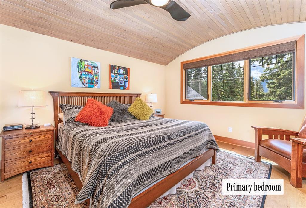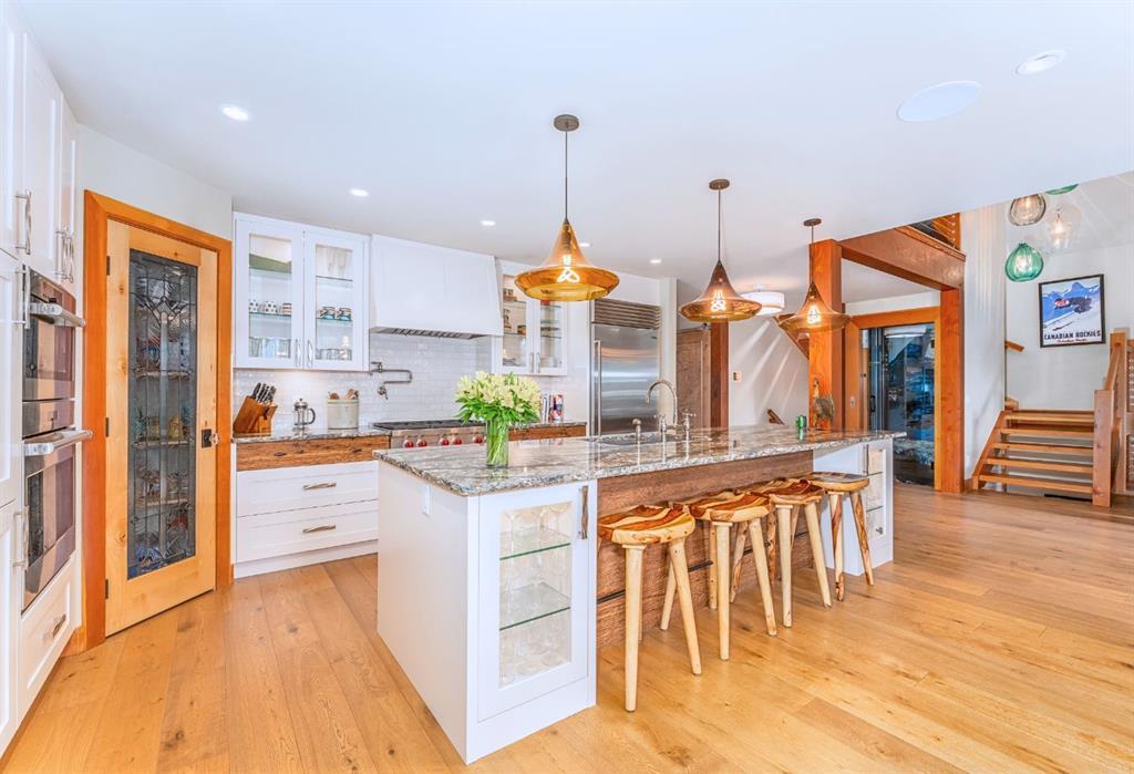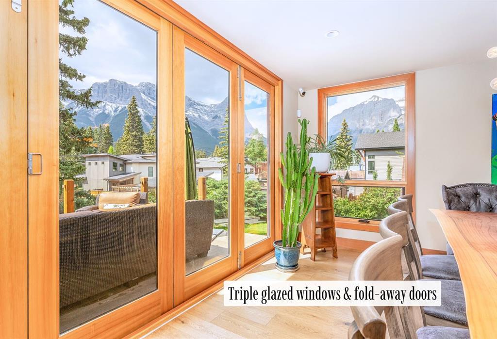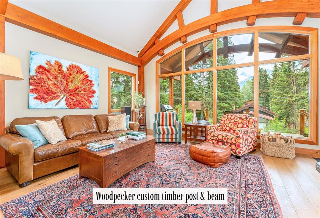 Welcome to an exceptional luxury home in the heart of South Canmore, where mountain living meets refined design in the most coveted neighbourhood in town. Framed by sweeping alpine vistas and set on quiet 4th Street, this remarkable 5-bedroom + office, 5-bathroom residence was thoughtfully designed as a forever home, perfectly balancing timeless architecture and generational functionality. From the moment you arrive, the home’s distinctive curved post-and-beam architecture makes a lasting impression. Graceful arcing rooflines echo the surrounding peaks, while the rich wood detailing creates a sense of warmth and permanence. Every line feels intentional, every space designed to evolve with you and your family through every stage of life. On the main floor, a serene bedroom with a full ensuite offers the ease of one-level living, ideal for guests or future accessibility. A built-in elevator connects every floor effortlessly—perfect for post-surgery recovery, limited mobility, or simply carrying groceries with ease. At the front of the home, a professional office provides a polished and private space to meet with clients, bathed in natural light and framed by peaceful neighbourhood views. The heart of the home unfolds in the breathtaking great room. A dramatic floor-to-ceiling wood-burning fireplace anchors the space, inviting cozy evenings as snow falls softly outside. Vaulted ceilings soar overhead, accentuated by curved timber beams that draw your eye upward—and outward—to the iconic Three Sisters. Walls of glass blur the boundary between indoors and out, filling the room with sunlight and ever-changing mountain moods. Step outside to spectacular outdoor living. The expansive south-facing deck is designed for every season: partially covered for year-round comfort, partially open for sun-soaked afternoons, stargazing nights, and front-row seats to the northern lights. Unobstructed views of Ha Ling Peak rise boldly before you, creating a backdrop that feels both dramatic and deeply calming. Downstairs, the second living room is bright and welcoming, with high ceilings and a wall of windows looking out over the charming fenced yard where mature and younger trees create layered privacy. Get used to gathering around the firepit under a canopy of stars, or enjoy quiet mornings surrounded by birdsongs. The large front deck captures warm afternoon and evening sun, offering sweeping views across the valley to the Cascade and Lady McDonald ranges—an ever-changing landscape of light, shadow, and alpen glow. The luxury kitchen blends striking aesthetics with intelligent design. High-end (Wolf & Sub Zero) appliances, premium finishes, and thoughtful storage make it as functional as it is beautiful. The partially open-concept layout keeps conversations flowing between the kitchen, generous eating bar, and spacious dining room—perfect for lively gatherings, holiday dinners, or intimate family meals. Adding to the home’s versatility is the option https://youtu.be/ev5eKVHPU5o