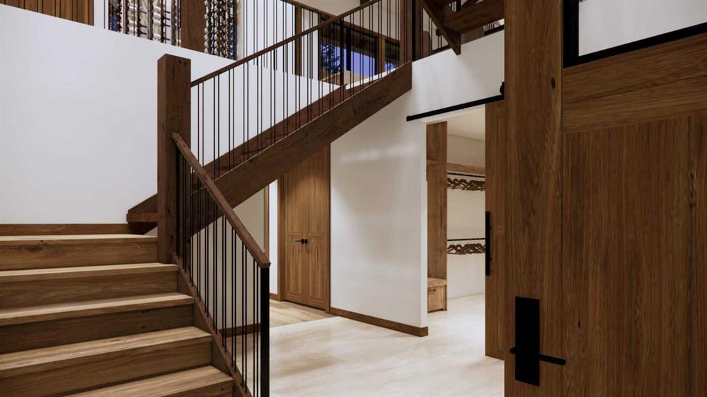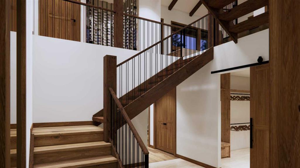 Step into luxurious living with this exceptional estate home, perfectly positioned on the renowned Silvertip Golf Course. Spanning nearly 4400sf, this exquisite residence features 5 spacious bedrooms and countless premium amenities designed to elevate your lifestyle. The home welcomes you with a grand foyer that seamlessly flows into the mudroom where you'll find built-ins, bench seating, and custom cabinetry while the triple car garage offers plenty of space for vehicles and gear. On this first floor, you’ll find a well-appointed home gym with glass enclosure and two of the five bedrooms offering comfort and versatility. The large rec room, complete with a wet bar and second gas fireplace is perfect for entertaining or unwinding after a day on the course. An elevator provides convenient access to all three floors, ensuring every level can be easily navigated. The heart of this home is undoubtedly the kitchen. Adorned with massive vaulted ceilings and nearly 360-degree windows capturing stunning views of Canmore’s most famous mountain ranges. Equipped with a built-in fridge, a generous butler’s pantry, large quartz island, 6 burner gas fireplace, and opulent wine cellar. Centered around a show-stopping stone-facing gas fireplace, the living room opens to a generous wrap around deck with unparalleled views and all day sun. Past the dining room and down the hall, you'll find the primary suite including an 11x17 walk-in closet and dreamy ensuite with double vanities and water closet, and a private balcony. Heading upstairs, you're greeted by an open air loft, 2 additional bedrooms and a Jack and Jill bathroom, providing both privacy and comfort for family members or guests. Blending luxury, comfort, and nature in a pristine golf course setting, experience the pinnacle of mountain living in this premier home built by one of Canmore's most notable builders, Distinctive Homes. *all interior selections can be chosen and customized by the buyers*