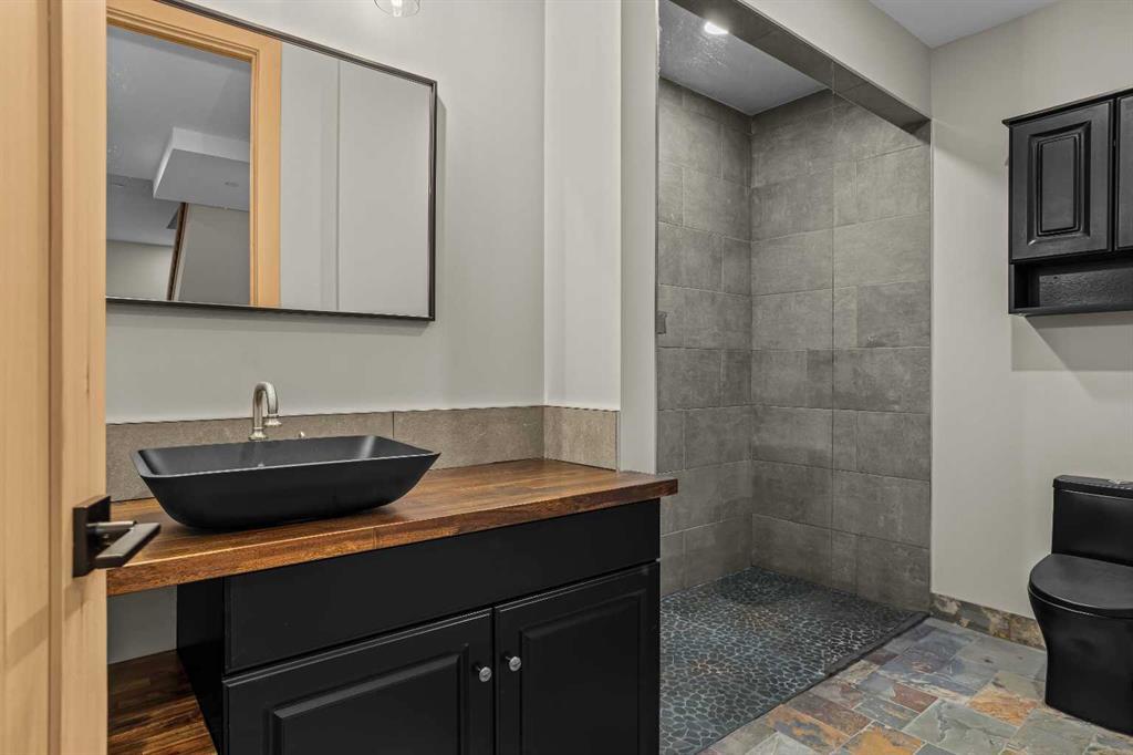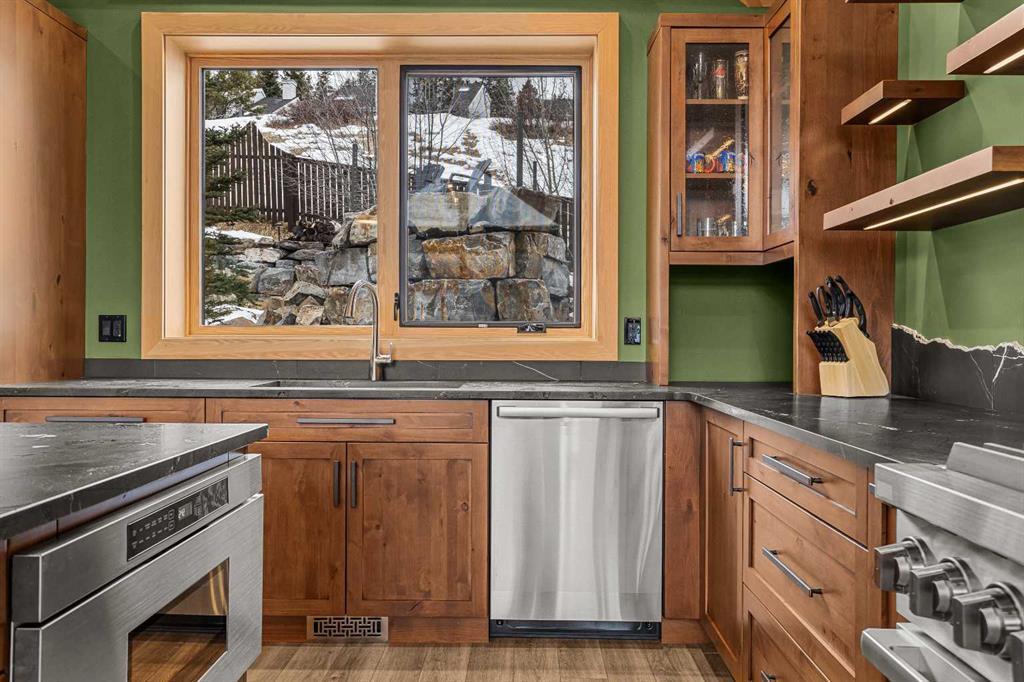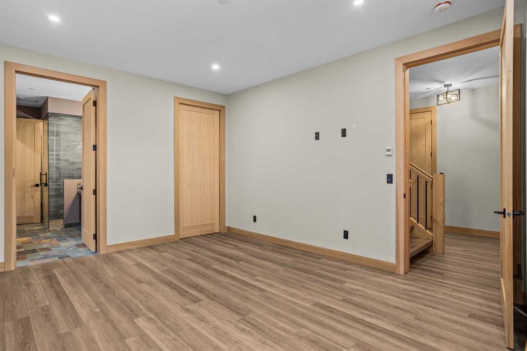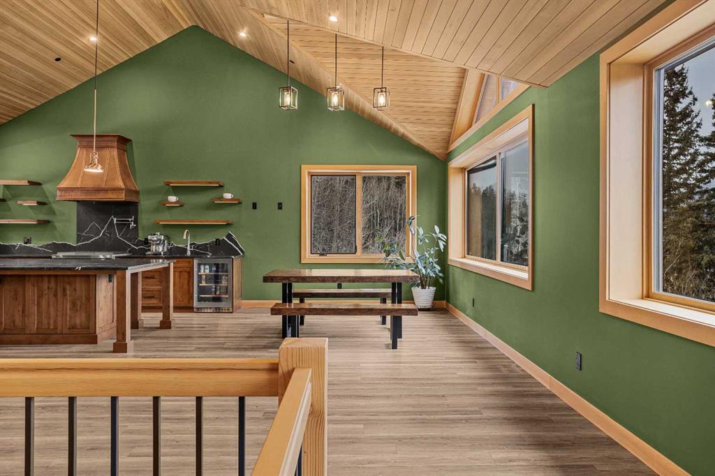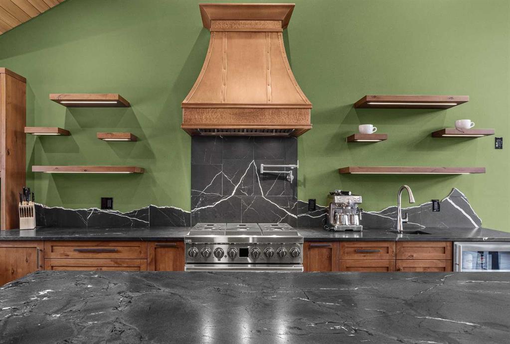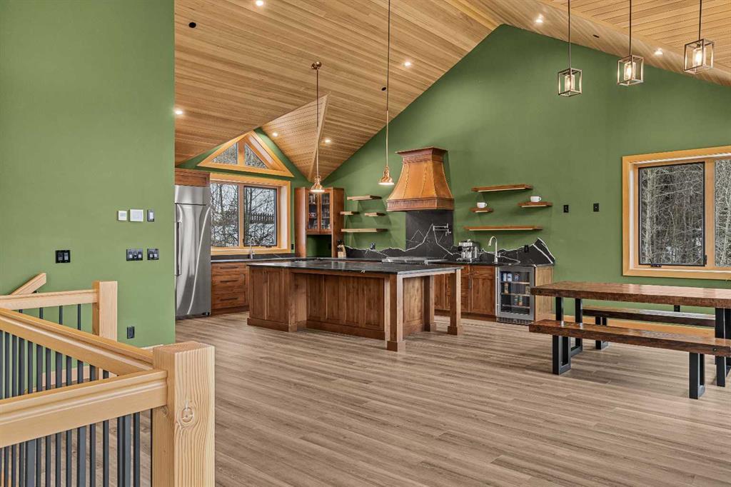 At nearly 3,200 SF, Positioned at the top of a quiet cul-de-sac, 104 Rummel Place captures elevated Bow Valley views in one of Canmore’s most peaceful residential settings. This 4-bedroom, 4-bathroom custom home blends privacy, scale, and thoughtful design anchored by a triple-car garage with exceptional storage capacity. Vaulted ceilings frame the surrounding mountain and valley views, creating a dramatic yet welcoming upper-level living space. Expansive windows draw natural light throughout, while multiple outdoor patios and balconies offer seamless indoor-outdoor living. The backyard is truly exceptional fully fenced and thoughtfully terraced with multiple lounging areas, a covered hot tub retreat, fire pit, and a private viewing platform perched above the valley an ideal vantage point to take in Canmore’s landscape. The kitchen is designed for entertaining, featuring a large island, gas range, prep sink, and generous workspace. The main level includes a spacious primary suite complete with a walk-in closet and a striking copper bathtub in the ensuite a distinctive design feature that elevates the space. Two additional bedrooms offer direct access to outdoor areas. The lower level includes a recreation room, fourth bedroom, and full bathroom, creating flexibility for guests, family, or additional living space. Additional features include in-floor heat throughout, heated driveway and steps, solar panels, elevator access to all levels, and rough-in for a future sauna or Nordic spa. This is a home defined by its position elevated, private, and immersed in nature while remaining just minutes from downtown Canmore.