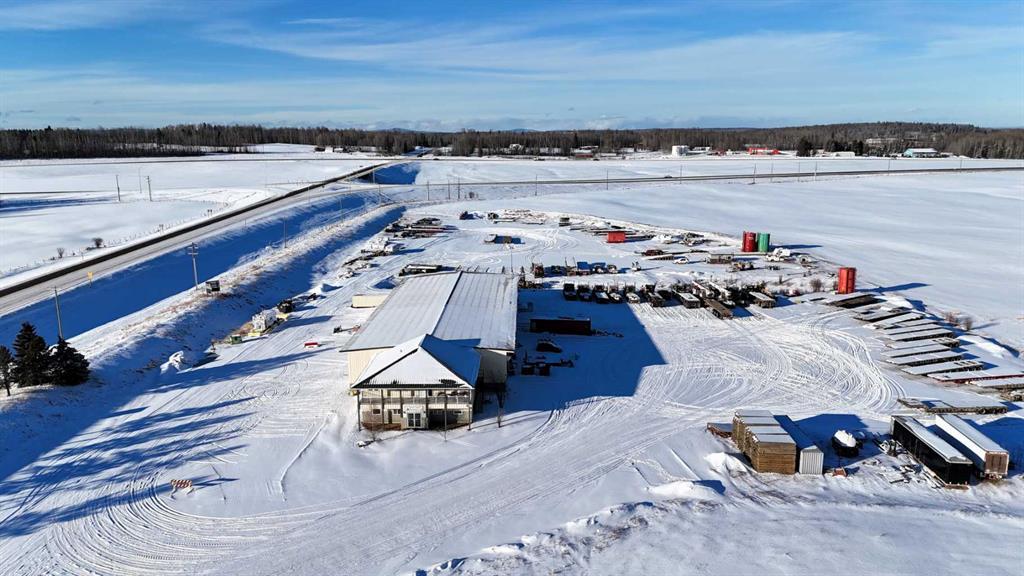 Prime Industrial Investment Opportunity - Commercial Building and 126 acres zoned ID with Highway 16 & Highway 47 frontage, on pavement and just West of Edson. This 2008 built commercial facility sits on an 8.57 acre separately title parcel and offers exceptional functionality with expansion potential. The North portion of the building consists of 3 – 30’ x 80’ drive thru bays with 18’ x 18’ doors (1 with a mechanic’s pit), 30’ x 25’ receiving area, a storage cage and a washroom with a shower and laundry hookups. There’s plenty of office space on two levels (offices, file room, washrooms, conference area, kitchen, open office work area, supply storage area and reception area) heated with forced air and air conditioned. The South portion of the building consists of 3 - 30’ x 80’ bays with 18’ x 18’ doors, one is currently a drive thru bay with a 50’ mechanic’s pit, and the other two bays were constructed to be drive thru should it be required. The shop has a washroom with laundry machines, a foreman’s office, a parts room and access to the upper-level storage room and kitchen/meeting room. The front of the building hosts a spacious furnished office area with 4 offices, an open concept administration area, a lunchroom, storage room, and a washroom. The upper level is a 3-bedroom, 2 bathroom furnished surveillance suite with a large south facing deck that overlooks the yard entrance. The building has 400-amp power (277/480 volt), and each shop has a 220v plug, a compressor with several air line drops, water outlets, floor drains, and overhead radiant heat. Two excellent, long-term tenants currently occupy the building on month-to-month agreements. The yard is hard-packed gravel with ample space to accommodate heavy trucks and equipment. The northwest part of property is currently used for overflow equipment parking. The balance of the property is 118 acres on a separate title and is currently utilized as hay land, is fenced, has a preliminary industrial subdivision plan on file and earns pipeline revenue. Alberta Transportation is in the process of constructing a new access road off Highway 47 to service this property and the West Fraser Mill to the south — enhancing accessibility and future growth opportunities. Excellent opportunity for owner-users, investors, or future industrial development.