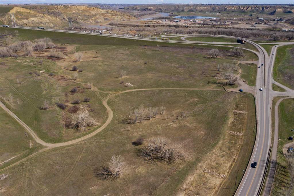 98 Acres | Riverbottom Property with Development and Irrigation Potential This unique 98-acre parcel offers a rare combination of irrigable land, natural beauty, and commercial exposure. Approximately 50 acres are classified as suitable for irrigation, with the seller having initiated arrangements with LNID to bring water onto the property. Extensive site grading and cleanup have been completed, and the land has been seeded to grass and alfalfa. The landscape features gently rolling terrain with established nature trails, a flat shelf ideal for development, scenic clusters of mature trees, and natural coulees. Situated near the Oldman River and Elizabeth Hall Wetlands, the property provides excellent recreational opportunities in a picturesque setting. A commercial component borders Bridge Drive, offering prime exposure and easy access to the main east-west transportation corridor.