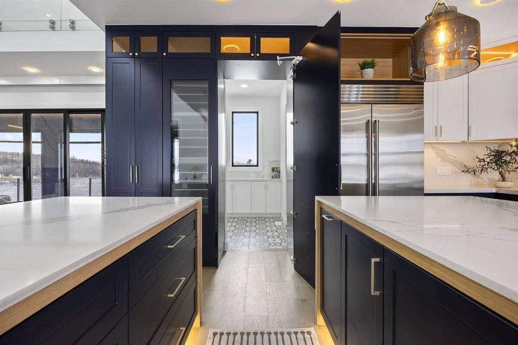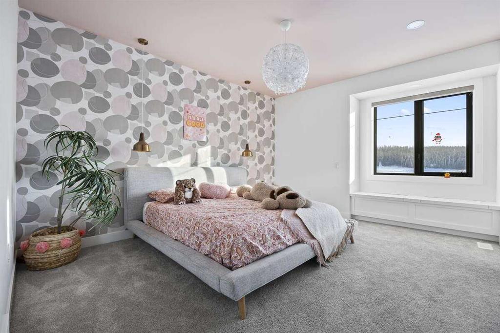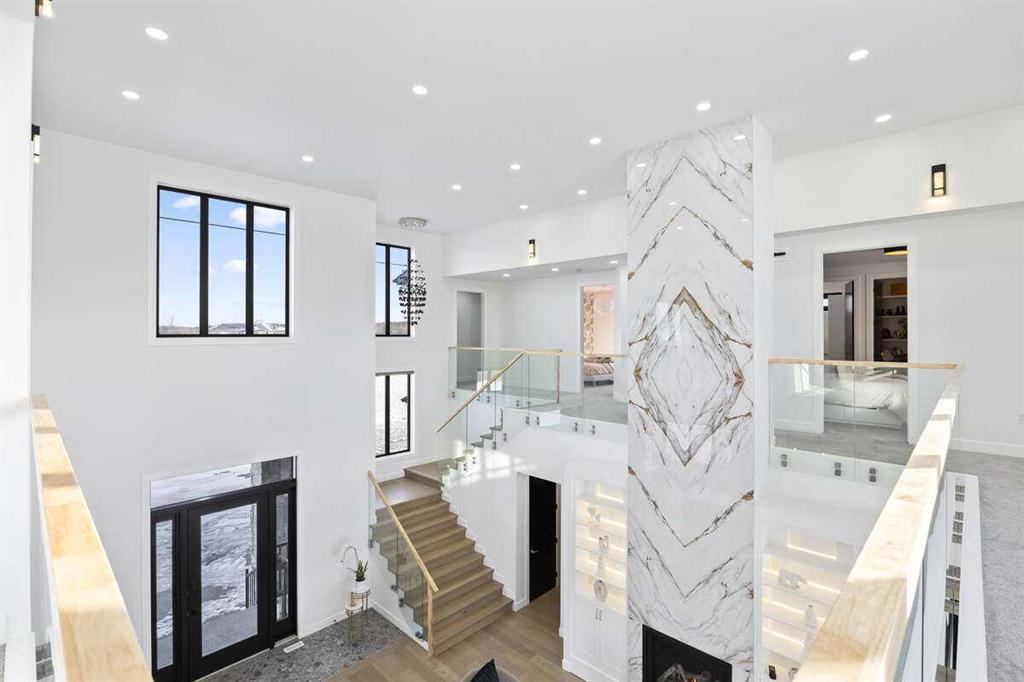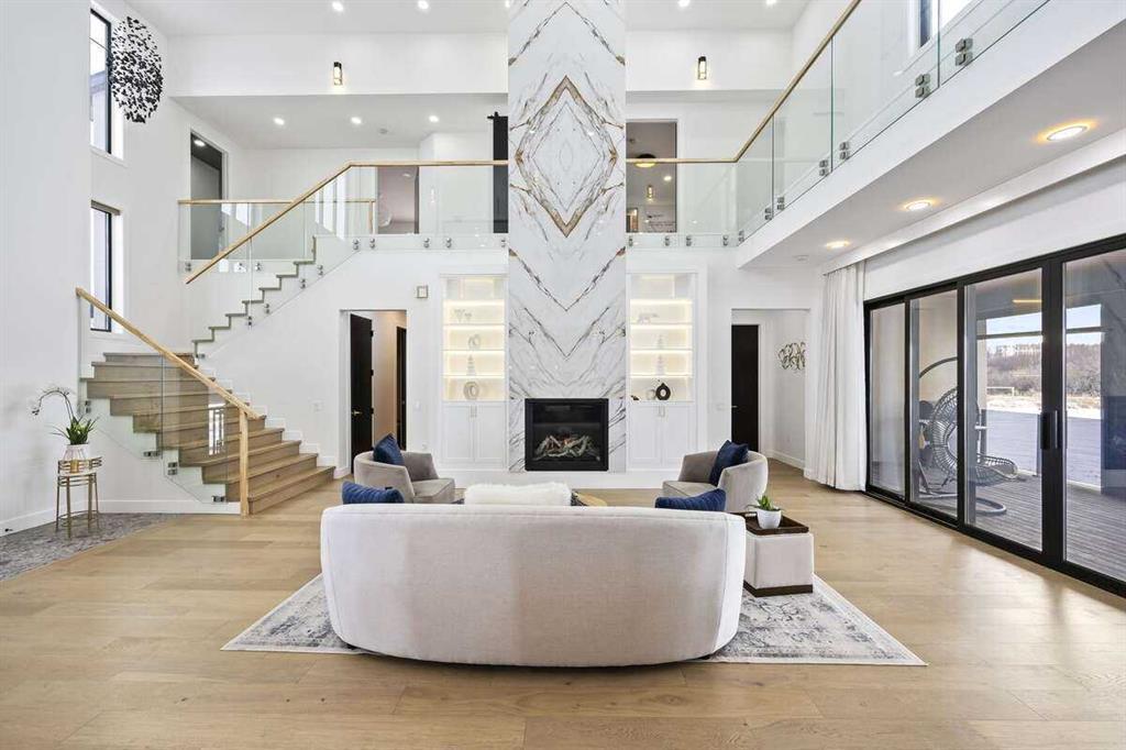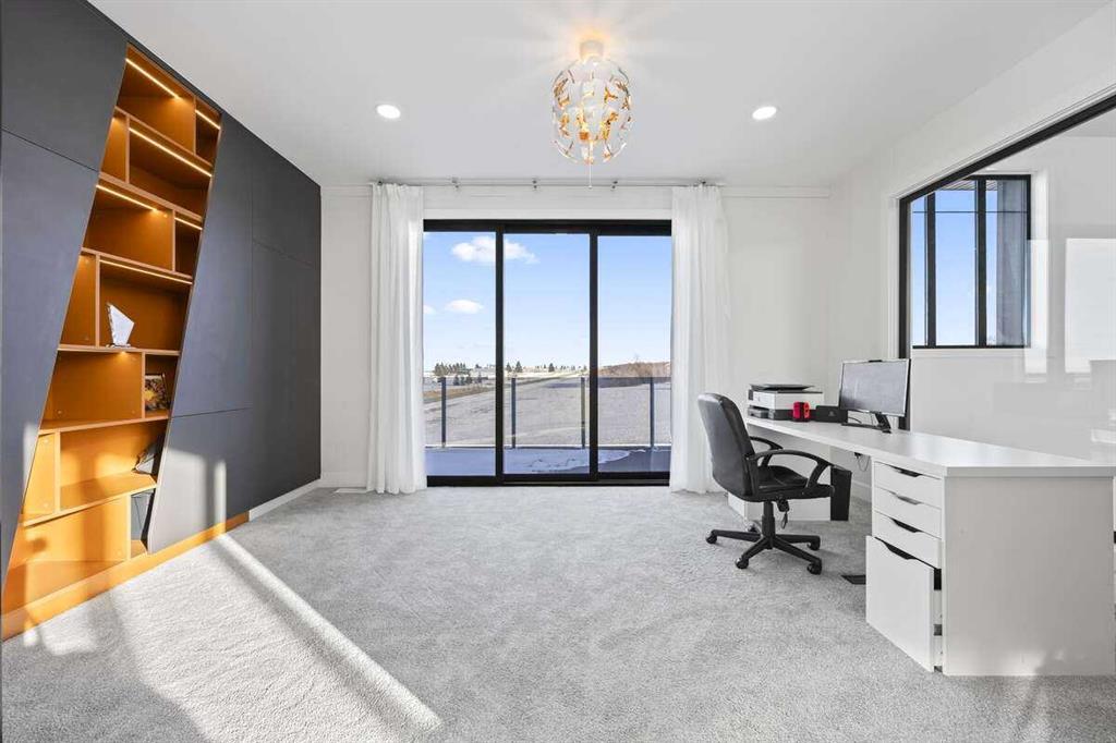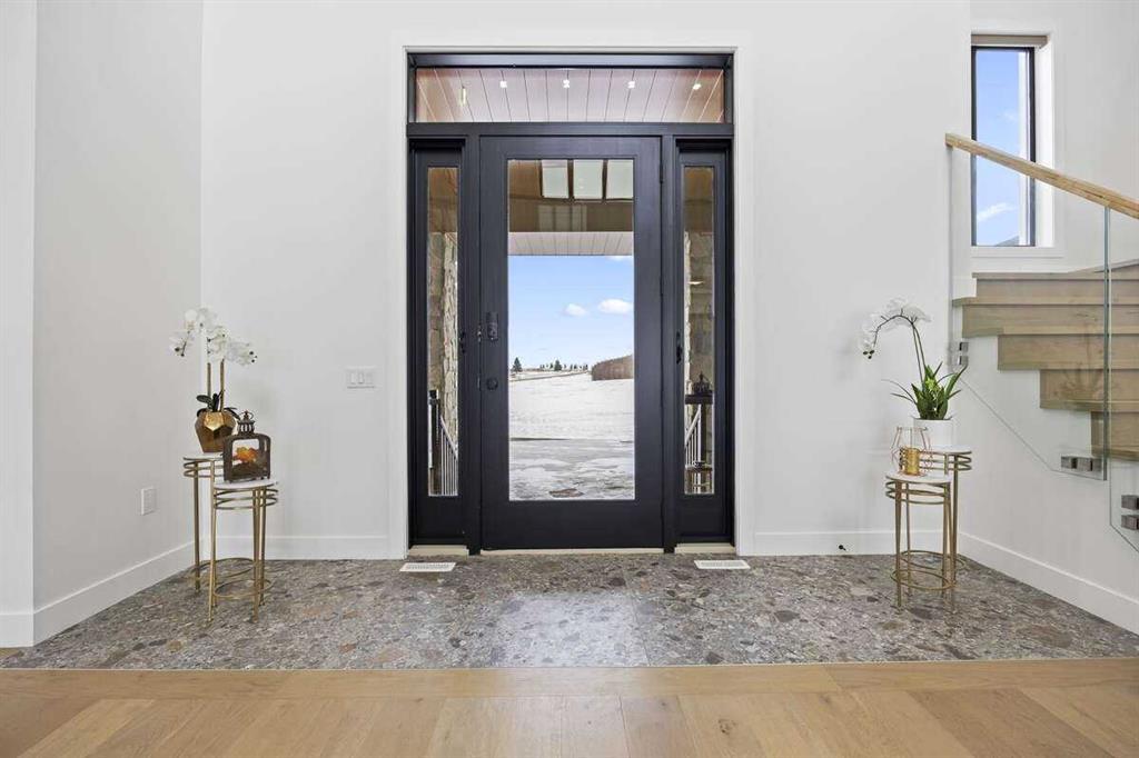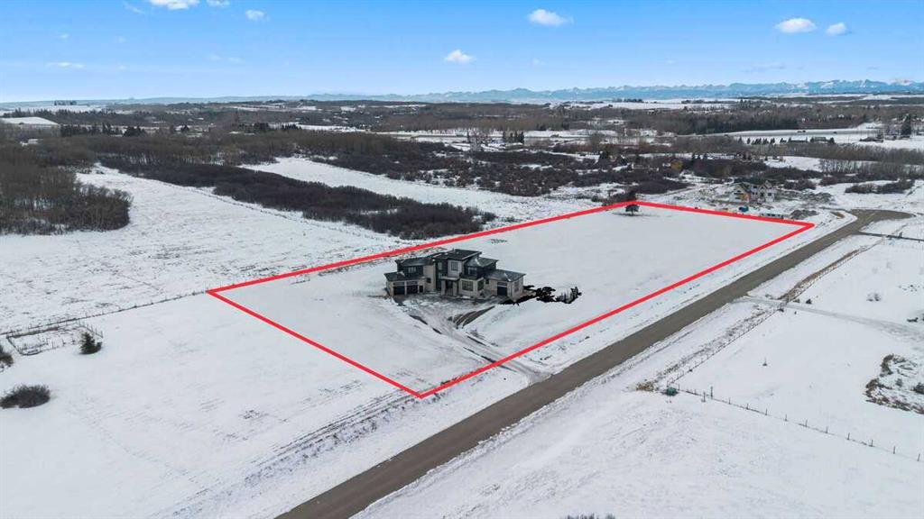 *** For more information, please click the "More Information" button. *** Welcome to an extraordinary blend of modern elegance and countryside charm. Built in 2023, this stunning 6-bedroom, 5.5-bathroom estate offers over 7,200 sq. ft. of meticulously designed living space, nestled on a picturesque 5-acre property. More than just a home, it’s a peaceful retreat surrounded by nature, yet conveniently close to Calgary’s South Campus hospital, top-rated schools, and urban amenities, offering the perfect balance of serene country living and city convenience. As you enter through natural flat stone pillars, a grand entryway welcomes you into warm and expansive living areas set against the breathtaking backdrop of the Rocky Mountains. The living room features a towering stone fireplace that serves as a centerpiece, while a glass-surround walkway bathes the space in natural light. Telescoping glass doors seamlessly connect indoor and outdoor spaces, making it ideal for entertaining or relaxing with loved ones. The chef’s kitchen is the heart of the home, featuring double islands perfect for hosting, high-end appliances including a combination steam oven, and two butler’s pantries. These pantries provide ample storage and include access to a hidden workspace and a single garage, adding both functionality and convenience to the kitchen’s design. The main-floor primary suite is a true sanctuary, boasting floor-to-ceiling west-facing windows that frame stunning views. The spa-inspired en-suite includes luxurious stone-accented walls, an oversized soaker tub, and a walk-in shower, while the custom-designed closet caters to a modern lifestyle with ample space and organization. Upstairs, three spacious bedrooms, each with walk-in closets and private bathrooms, provide comfort and privacy for family or guests. A striking glass walkway connects a custom home office and a cozy family room, creating a unique and inviting upper-level retreat. The lower level is designed for both relaxation and activity. Highlights include a home gym with a pro-height basketball hoop, a luxurious steam shower for post-workout relaxation, an additional bedroom, and a versatile flex room that opens directly to the backyard. The outdoor space offers endless possibilities. The expansive backyard is a blank canvas awaiting your vision—whether it’s a vibrant garden, a playground, or even space for animals. The property’s 5-acre expanse ensures privacy and room to customize. Behind the beauty of this estate lies impeccable functionality. Two mechanical rooms house high-end systems, including advanced A/C, on-demand hot water, and multiple furnaces and boilers, ensuring comfort year-round. Premium finishes, custom flooring, and thoughtful details elevate the home’s design. This property is more than a residence—it’s a lifestyle. Whether hosting grand gatherings, seeking a tranquil retreat, or making cherished family memories, this estate delivers it all. Don’t miss your opportunity to own this incredible count