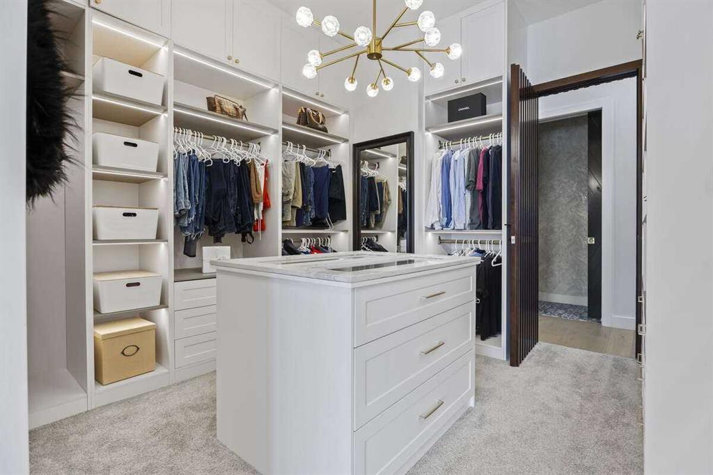 - Bidet, Built-in Features, Central Vacuum, Chandelier, Closet Organizers, Double Vanity, French Door, High Ceilings, Jetted Tub, Kitchen Island, Open Floorplan, Pantry, Master Downstairs, Recessed Lighting, Recreation Facilities, Separate Entrance, Soaking Tub, Steam Room, Storage, Sump Pump(s), Walk-In Closet(s), Wired for Sound