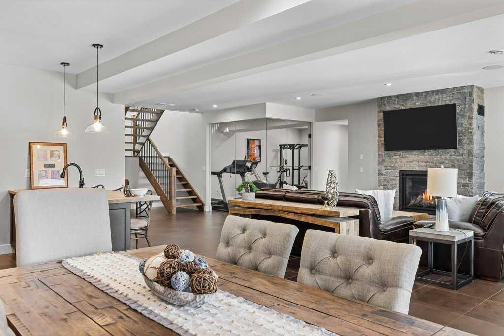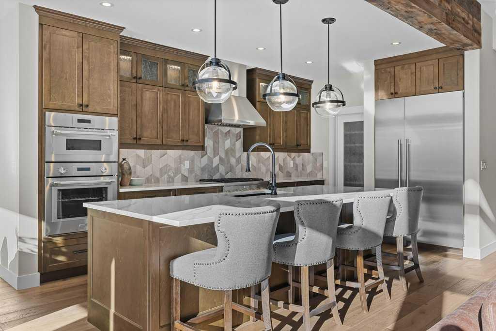 Experience this 3 year old luxurious mountain home located in Silvertip! Nestled in a private location on a huge lot backing onto the Silvertip Golf Course, this four bedroom, four bathroom home boasts 4200 square feet of spectacular mountain views and generous indoor and outdoor living spaces offering lavish features throughout. The main level features a kitchen with large pantry and great room with a grand, stone fireplace, vaulted ceilings, and beam work as well as a master bedroom with en-suite and walk in closet, den/bedroom with walk in closet, full bath, and laundry room. The walkout basement offers a custom wine display and wet bar, recreation and living area with fireplace, fitness room, junior master with en-suite, an additional bedroom, full bathroom, and two storage areas. Features include Thermador appliances, open riser stairs, nine foot basement ceilings, Sonos sound system, Kohler steam shower, in floor heating in basement and garage, triple car garage, landscaping, and much more. Professional interior design services were provided to create a timeless, classic, luxurious, and mountain modern aesthetic. Fully furnished including patio furniture.