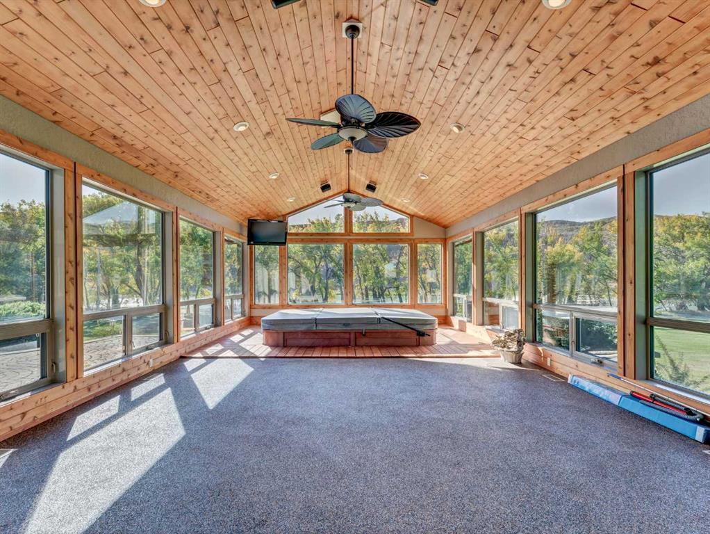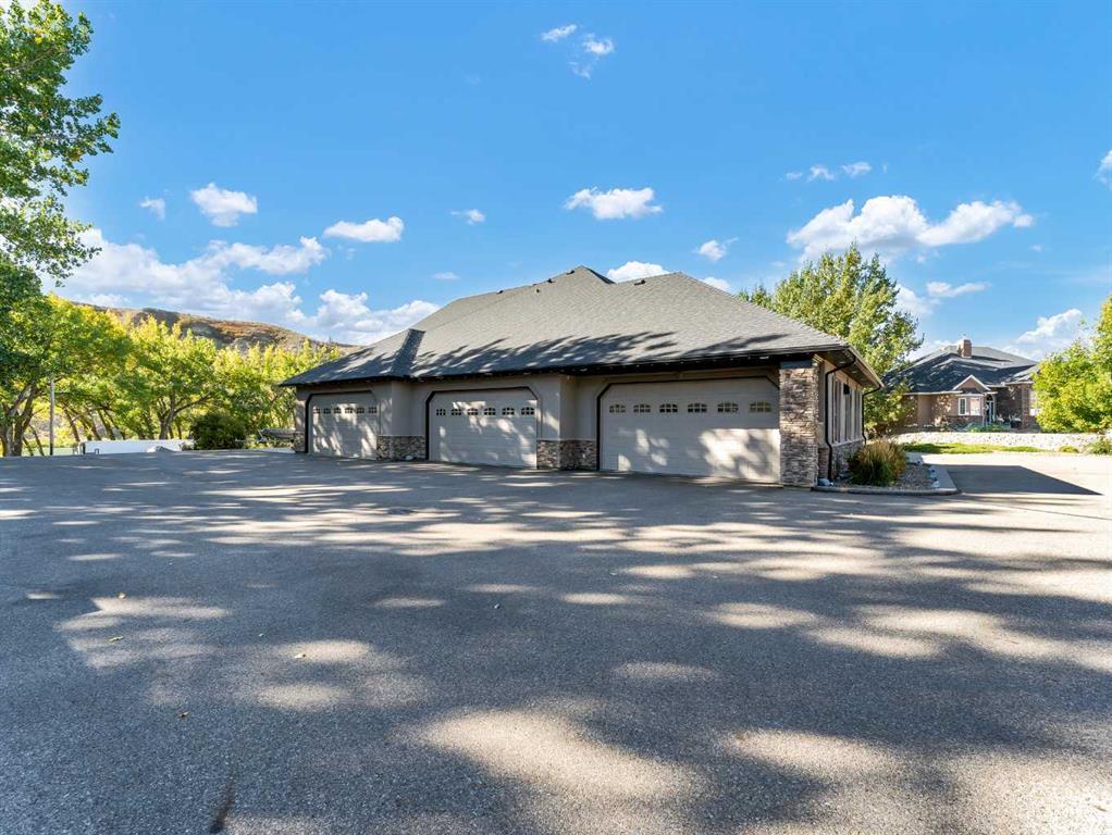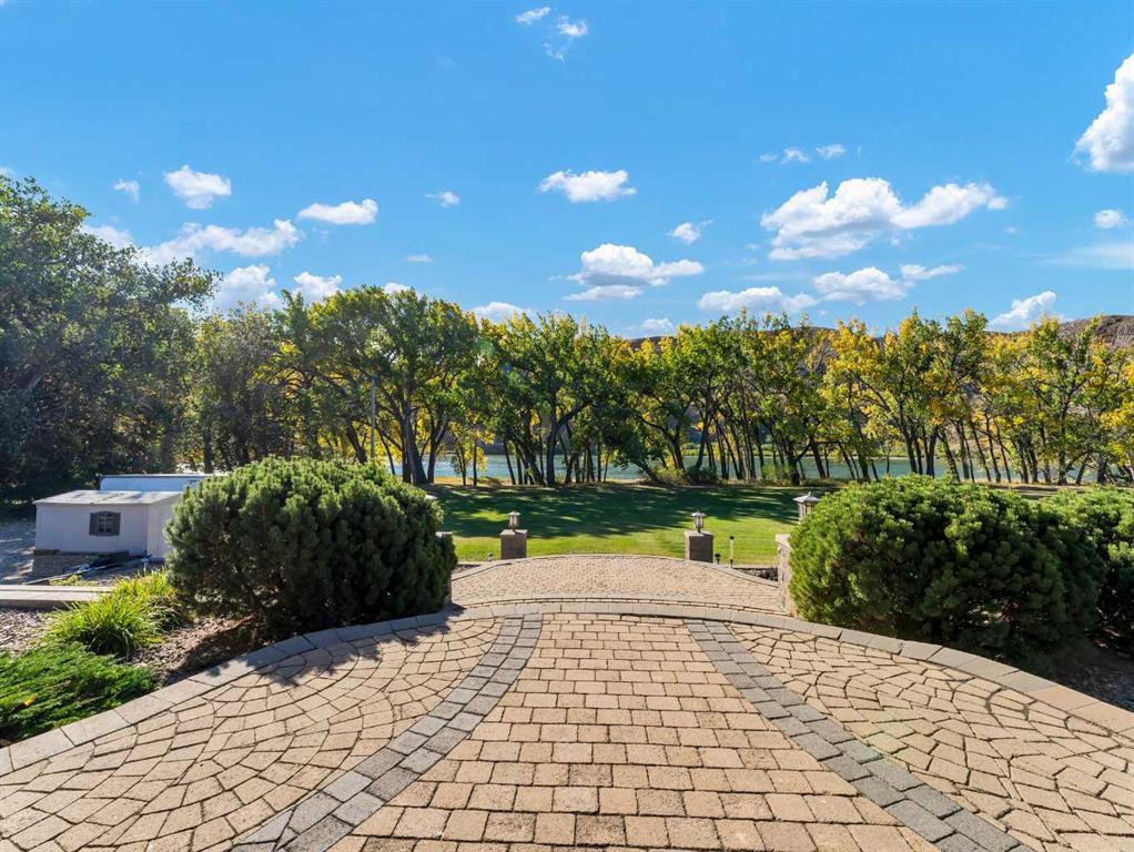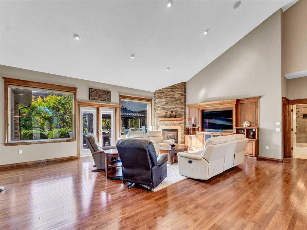 Welcome to your dream home! This extraordinary custom built riverfront estate is beautifully situated on a private .99 acre lot, with its blend of luxurious interior features, architectural distinction, and peaceful surroundings, this home is truly a rare offering. Whether you are looking to entertain in grand style or retreat into your own sanctuary, this property delivers on every level. Enter through an impressive stone columned portico with dramatic archways and recessed lighting, setting the tone for the sophisticated interiors that lie beyond. The richly textured stone is complemented by the stunning custom glass front door with oval insert and transom window, filling the entryway with natural light. Soaring vaulted ceilings create a sense of value and space, anchored by a custom built stone fireplace, the perfect setting for cozy nights or elegant evenings. Oversized triple pane windows bring the outdoors in ,flooding the space with natural light and offering outstanding views of the river. Rich hardwood flooring flows throughout, seamlessly connecting open spaces with warmth and elegance. Gourmet kitchen designed to satisfy the home chef: custom cabinetry, granite countertops, high end appliances, double ovens, warming oven, induction cooktop, large island with sink, a second island with seating, and walk thru pantry. And you will love the formal dining for all those special moments with family and friends. The massive primary bedroom offers a personal sanctuary, private sitting area and cozy nook with large windows that provides a quiet place to unwind, read, or enjoy morning coffee with river views. French doors open to a sun filled room, a perfect yoga space and a hot tub, ideal for relaxing year round while enjoying the surrounding nature. Luxurious spa like ensuite with infloor heat, soaking tub, tiled shower, double vanities, and a generous boutique style walk in closet featuring custom cabinetry. The large laundry room with sink is also conveniently located on the mail floor. The additional bathroom with steam shower is also the perfect addition. Two additional spacious bedrooms with ample closet space and home office/bedroom. There is also a large theatre room with 2 pc bath and Large bonus room with a beautiful view, the space is endless. Step outside to your own private oasis - a sprawling, multi-level brick patio designed for both entertaining and peaceful relaxation. Maximizing the breath taking river views, this beautiful crafted outdoor space offers seamless blend of charm, functionality and natural beauty. Plenty of room for gardening, perfect for kayaking, fishing, floating or simply enjoying the view! Just when you think it can't get any better, wait until you see this massive garage with in floor heat, 2 pc bathroom, and it also includes a large separate bay for your car collection with glass viewing windows. This exquisite property showcases impeccable craftsmanship and timeless architectural details throughout.