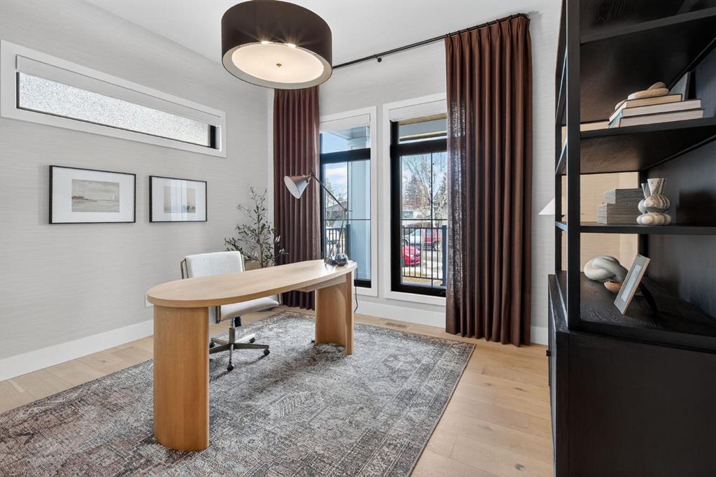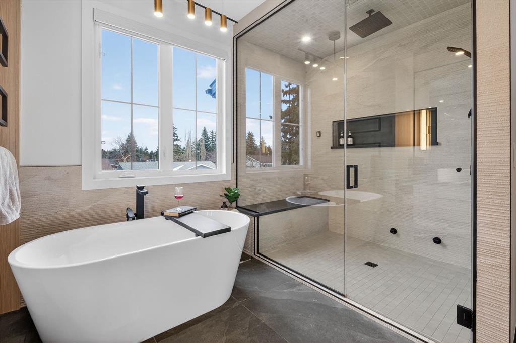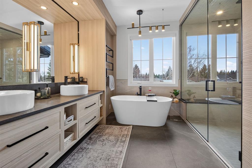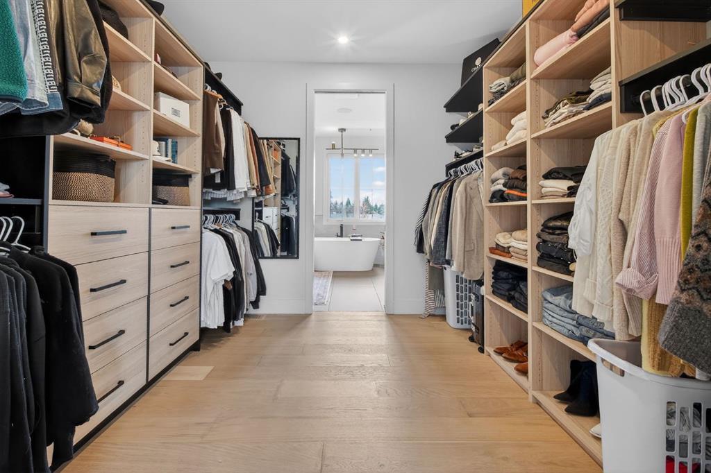 This exceptional luxury home offers a rare opportunity to own a residence in the highly sought-after community of Lakeview. Every detail has been thoughtfully curated—from the impressive grand foyer to the elevated finishes carried throughout more than 5,000 sq. ft. of developed living space. The main level is designed with both everyday living and entertaining in mind, featuring an open-concept layout that creates seamless flow between the principal rooms. Rich hardwood floors, flat-painted and detailed tray and vaulted ceilings, glass and metal doors, and built-in speakers with eight audio zones all contribute to the home’s refined, modern feel. The spacious living room connects effortlessly to the formal dining area and a beautifully appointed chef’s kitchen, creating an ideal setting for everything from intimate family evenings to large-scale entertaining. At the heart of the home, the kitchen is a true showpiece, complete with a premium JennAir appliance package, custom cabinetry, a large 10-foot island with storage, reverse osmosis water filtration, and a built-in wine display. A generously sized butler’s pantry adds even more functional storage and prep space, making the home as practical as it is elegant. Upstairs, the primary suite is a private retreat, highlighted by vaulted ceilings, a coffee station, and its own balcony. The spa-inspired ensuite is designed for relaxation, featuring an oversized steam shower and a deep soaker tub. Two additional upstairs bedrooms each include their own ensuite bathrooms, offering both comfort and privacy for family or guests. The fully finished basement expands the home’s versatility with an impressive collection of lifestyle spaces. Highlights include a striking wet bar with island seating, a large media and flex room, a dedicated gym, two additional bedrooms, a custom shower, and an extra washer and dryer set—perfect for guests, extended family, or multi-functional living. This home also embraces modern convenience through integrated smart home technology, allowing you to control lighting, temperature, security, and music directly from your smartphone. Comfort, efficiency, and long-term performance are central to the design, with features such as two high-efficiency furnaces, two air conditioning units, in-floor heating, extensive closed-cell spray foam insulation throughout the entire home including the basement, upgraded one-touch dimmer switches, solid core doors, and a built-in security system with cameras. The oversized heated double garage offers ample room for vehicles and additional storage, and is complete with an electric vehicle charging station. Set on a quiet street near North Glenmore Park, this location offers an outstanding balance of tranquility and convenience. Surrounded by the natural beauty of the Glenmore Reservoir and Lakeview Golf Course, the home is also just a short commute to downtown Calgary, with easy access to the mountains, excellent schools, parks, shopping, the Lakeview off-leash area