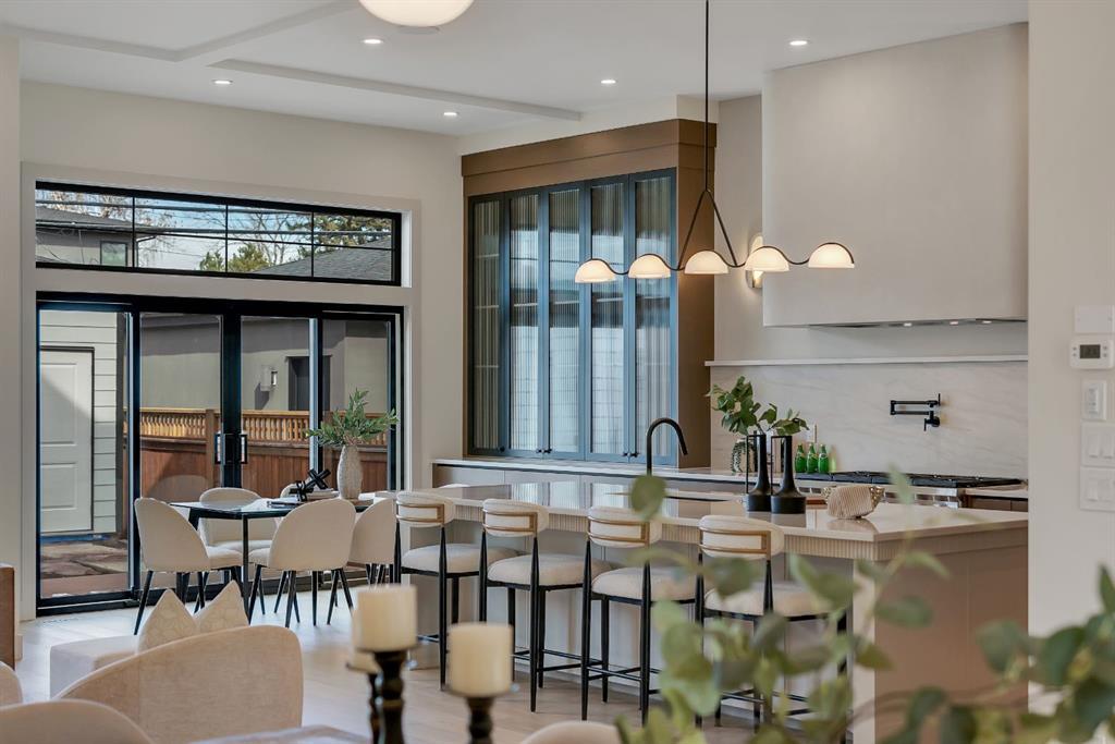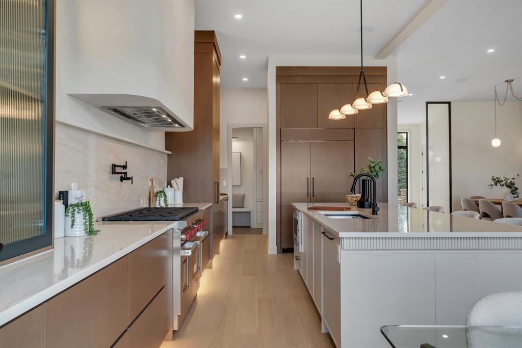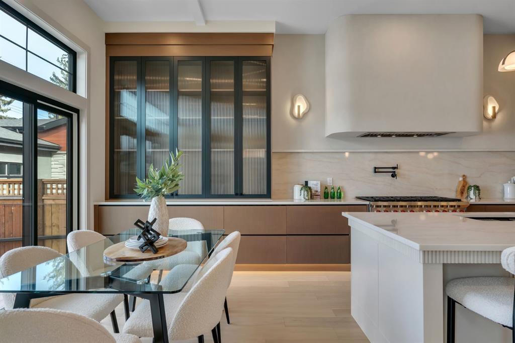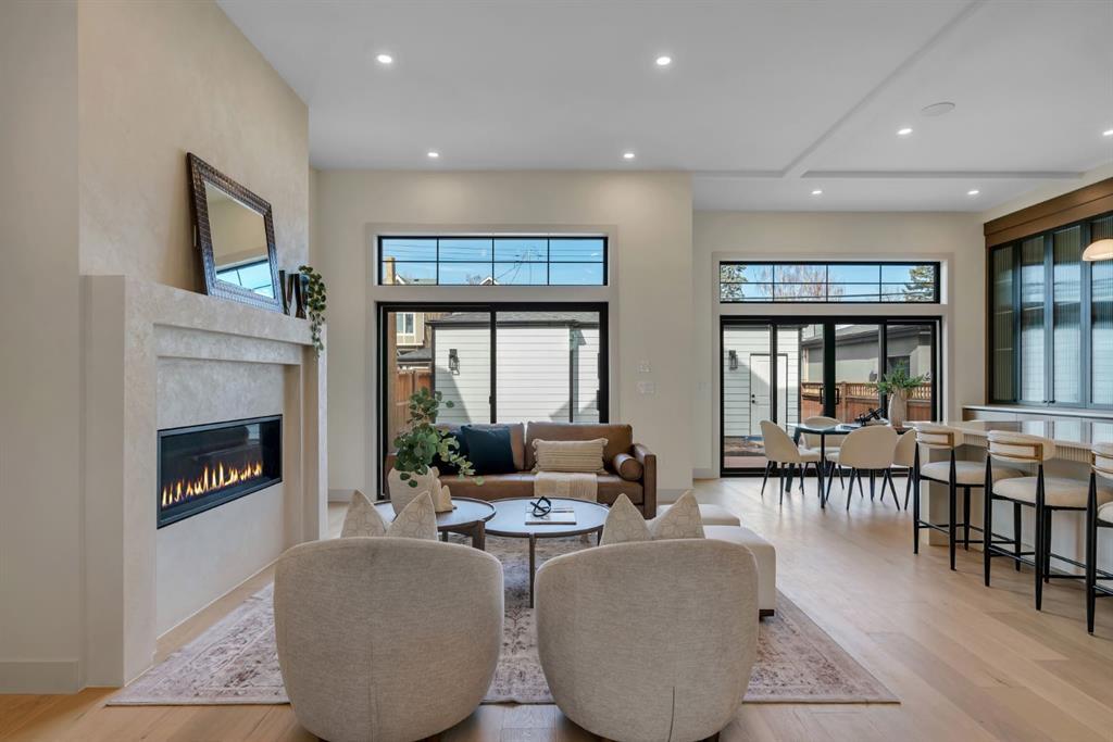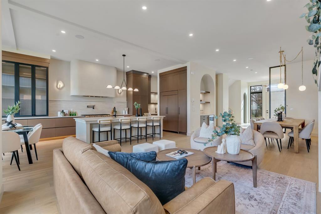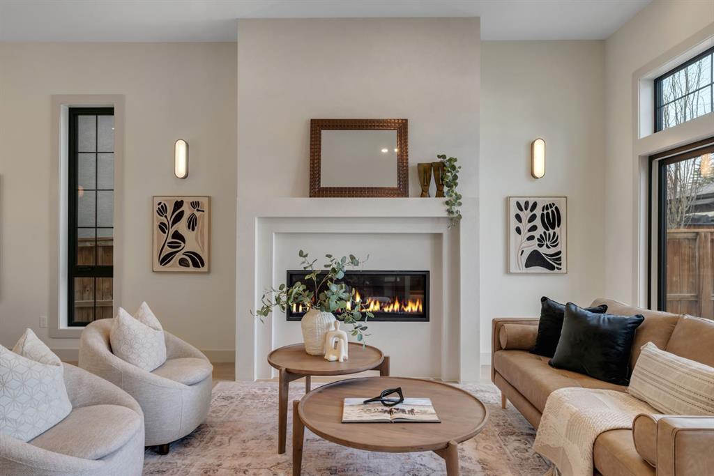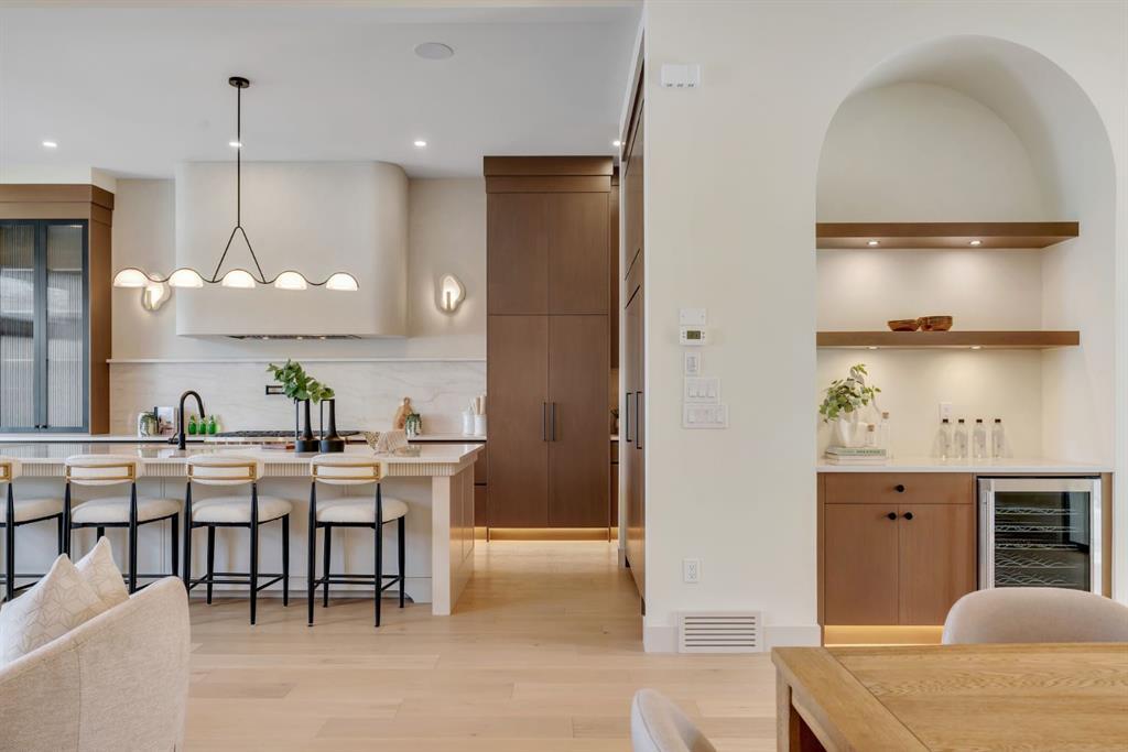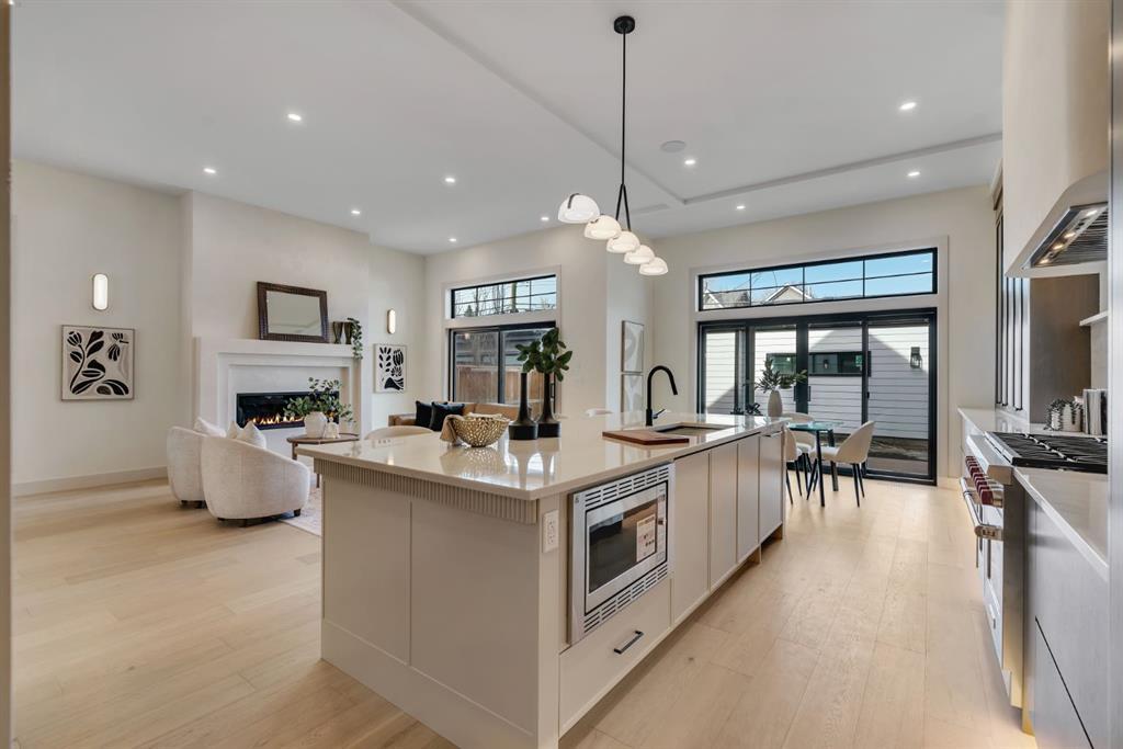 Located on one of Altadore’s most desirable streets, this brand-new custom residence by Jerry Homes with architectural design by aalstudios offers over 4,200 total square feet of expertly finished living space, seamlessly combining classic architectural elements with a refined modern aesthetic. The exterior makes a striking first impression with its rich red brick, wood siding, and carefully placed accent lighting that enhances the home’s bold yet sophisticated presence. Inside, the main level is defined by soaring 11’ ceilings, oversized windows, and wide-plank hardwood flooring, beginning with a welcoming foyer that leads to a beautifully designed front office or study featuring large south-facing windows and custom built-ins, alongside an elegant dining area highlighted by arched millwork details. The living room is anchored by a multi-tiered fireplace finished in textured sand paint and connects effortlessly to the backyard through oversized sliding doors that flood the space with natural light, while a bright breakfast nook with custom oak cabinetry also provides direct access outside. The kitchen is a true showpiece, complete with full-height oak cabinetry, hood fan finished in textured sand paint, a large quartz island with fluted detailing and curved toe kicks, a walk-in pantry, and a premium built-in appliance package including Sub-Zero and a 48” gas Wolf stove. A designer powder room and a thoughtfully designed mudroom with custom millwork complete the main floor. The upper level features three generously sized bedrooms, each with its own ensuite, along with a versatile den enhanced by large south-facing windows. The primary suite offers a luxurious retreat with twelve-foot tray ceilings, expansive windows, and a spa-inspired ensuite finished entirely in textured sand paint, showcasing a curved glass shower, a freestanding fluted soaker tub, dual vanities, in-floor heating, steam shower, and two spacious walk-in closets, including one with a dedicated makeup vanity. The secondary bedrooms are equally well-appointed with walk-in closets and elegant en-suites, while a fully equipped laundry room with built-in cabinetry and a sink adds everyday convenience. The fully developed basement continues the home’s elevated design with a large recreation area, in-floor heat, a custom wet bar, built-in shelving, a glass-enclosed gym, a custom wine room, a spacious guest bedroom, and a full bathroom. Additional features include rough-ins for security cameras, and integrated speakers throughout. The exterior will be completed with professional landscaping, and also features a rare triple detached garage. Located just steps from parks, schools, and the amenities of Marda Loop, this exceptional home offers a perfect balance of luxury, functionality, and inner-city living. Call today to book your private tour.
