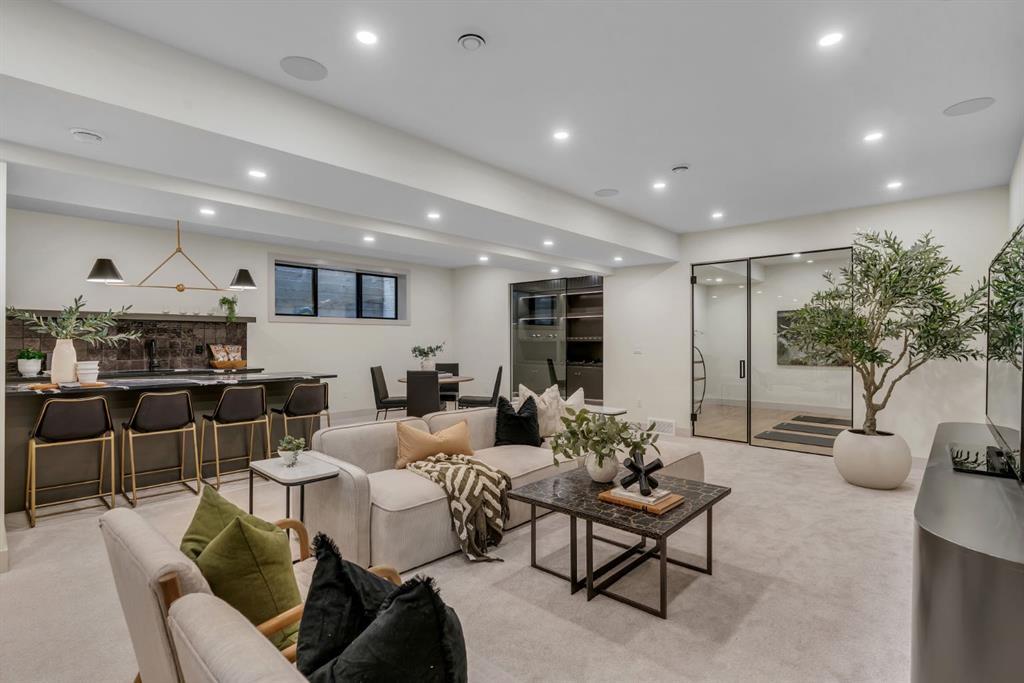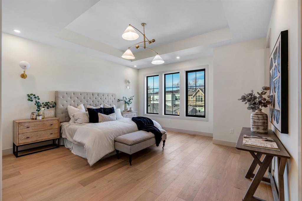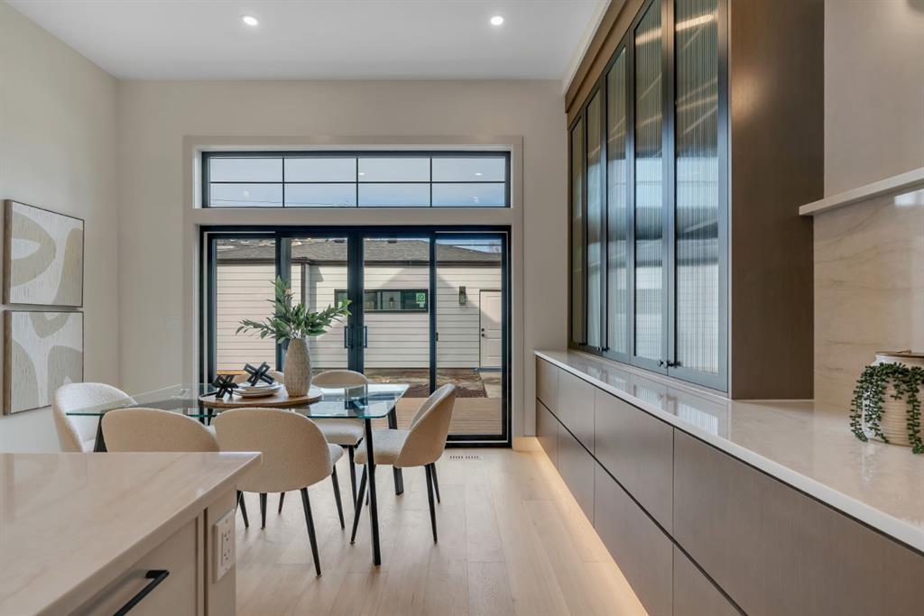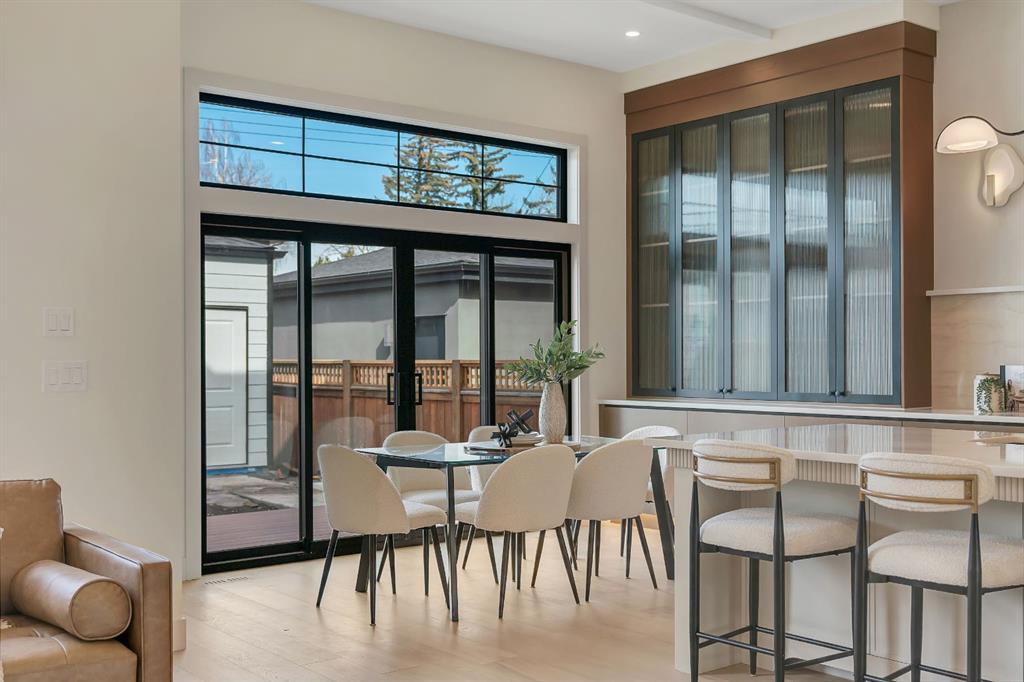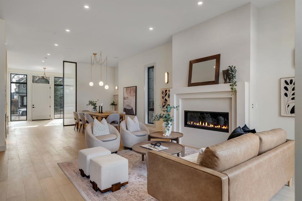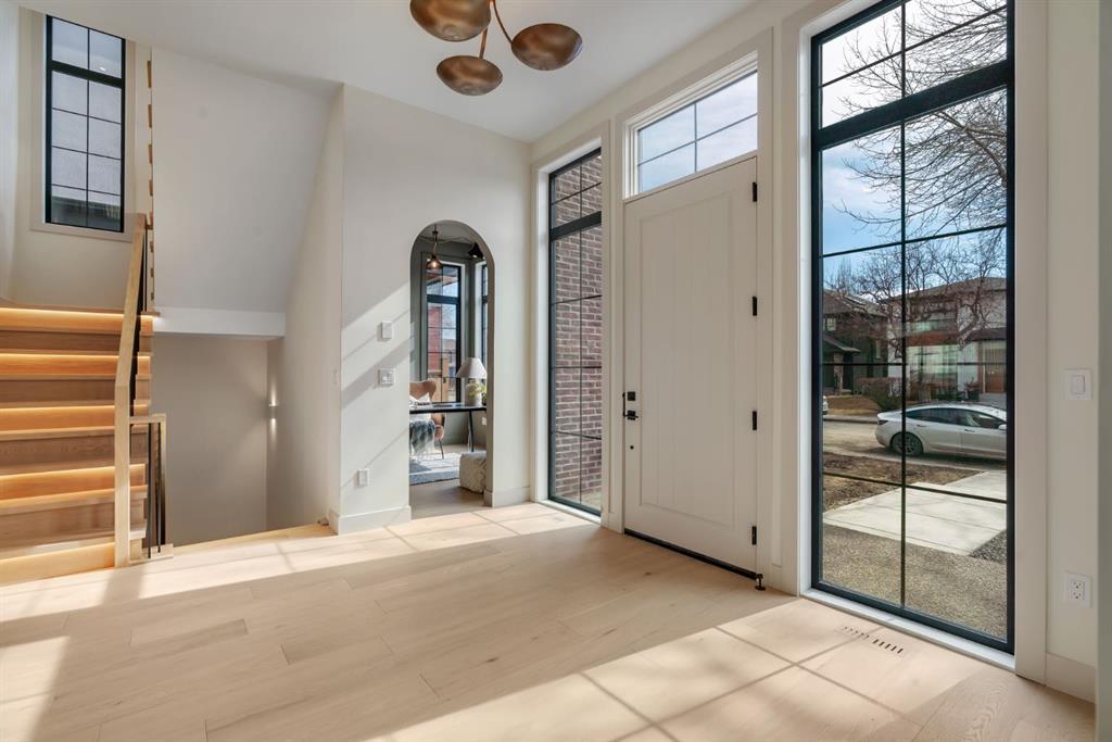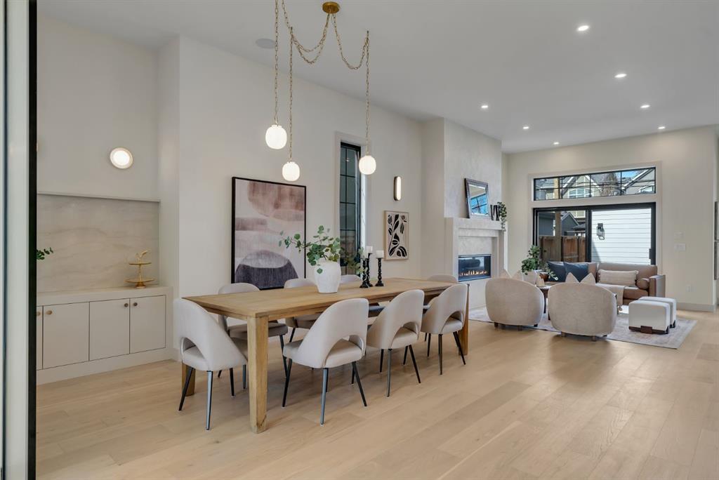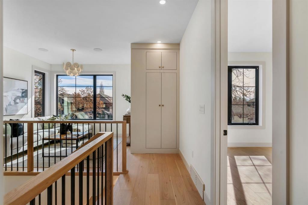 Located on one of Altadore’s most desirable streets, this brand-new custom residence by Jerry Homes with architectural design by aalstudios offers over 4,200 total square feet of expertly finished living space, seamlessly combining classic architectural elements with a refined modern aesthetic. The exterior makes a striking first impression with its rich red brick, wood siding, and carefully placed accent lighting that enhances the home’s bold yet sophisticated presence. Inside, the main level is defined by soaring 11’ ceilings, oversized windows, and wide-plank hardwood flooring, beginning with a welcoming foyer that leads to a beautifully designed front office or study featuring large south-facing windows and custom built-ins, alongside an elegant dining area highlighted by arched millwork details. The living room is anchored by a multi-tiered fireplace finished in textured sand paint and connects effortlessly to the backyard through oversized sliding doors that flood the space with natural light, while a bright breakfast nook with custom oak cabinetry also provides direct access outside. The kitchen is a true showpiece, complete with full-height oak cabinetry, hood fan finished in textured sand paint, a large quartz island with fluted detailing and curved toe kicks, a walk-in pantry, and a premium built-in appliance package including Sub-Zero and a 48” gas Wolf stove. A designer powder room and a thoughtfully designed mudroom with custom millwork complete the main floor. The upper level features three generously sized bedrooms, each with its own ensuite, along with a versatile den enhanced by large south-facing windows. The primary suite offers a luxurious retreat with twelve-foot tray ceilings, expansive windows, and a spa-inspired ensuite finished entirely in textured sand paint, showcasing a curved glass shower, a freestanding fluted soaker tub, dual vanities, in-floor heating, steam shower, and two spacious walk-in closets, including one with a dedicated makeup vanity. The secondary bedrooms are equally well-appointed with walk-in closets and elegant en-suites, while a fully equipped laundry room with built-in cabinetry and a sink adds everyday convenience. The fully developed basement continues the home’s elevated design with a large recreation area, in-floor heat, a custom wet bar, built-in shelving, a glass-enclosed gym, a custom wine room, a spacious guest bedroom, and a full bathroom. Additional features include rough-ins for security cameras, and integrated speakers throughout. The exterior will be completed with professional landscaping, and also features a rare triple detached garage. Located just steps from parks, schools, and the amenities of Marda Loop, this exceptional home offers a perfect balance of luxury, functionality, and inner-city living. Call today to book your private tour.