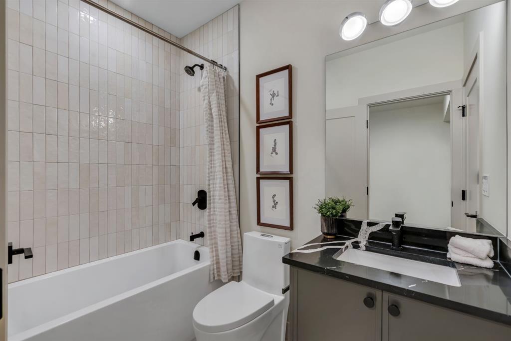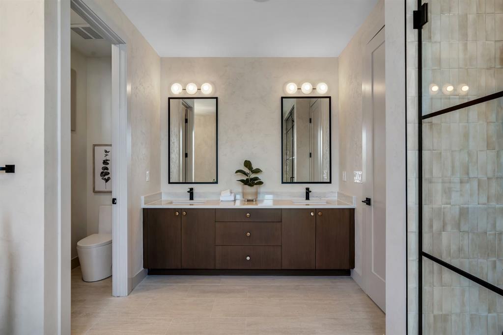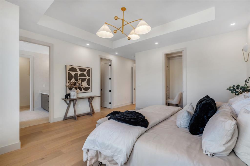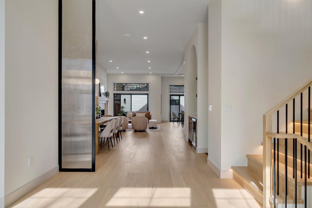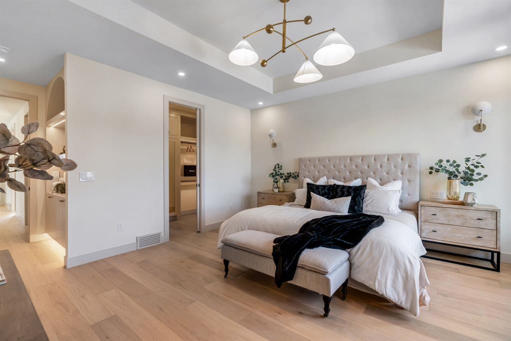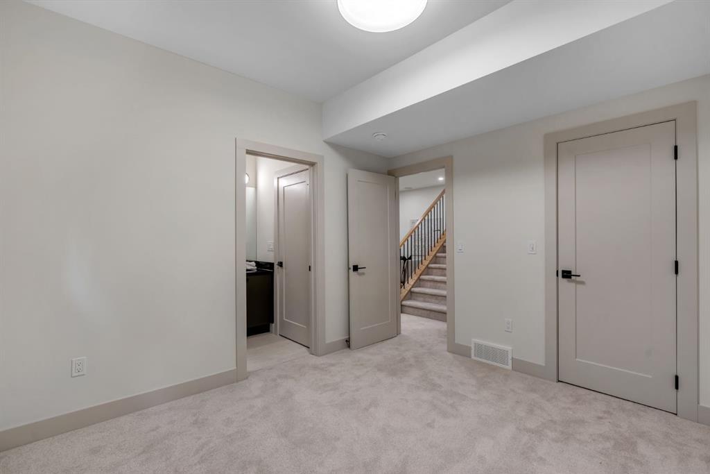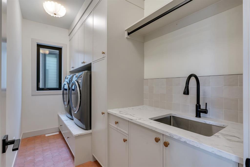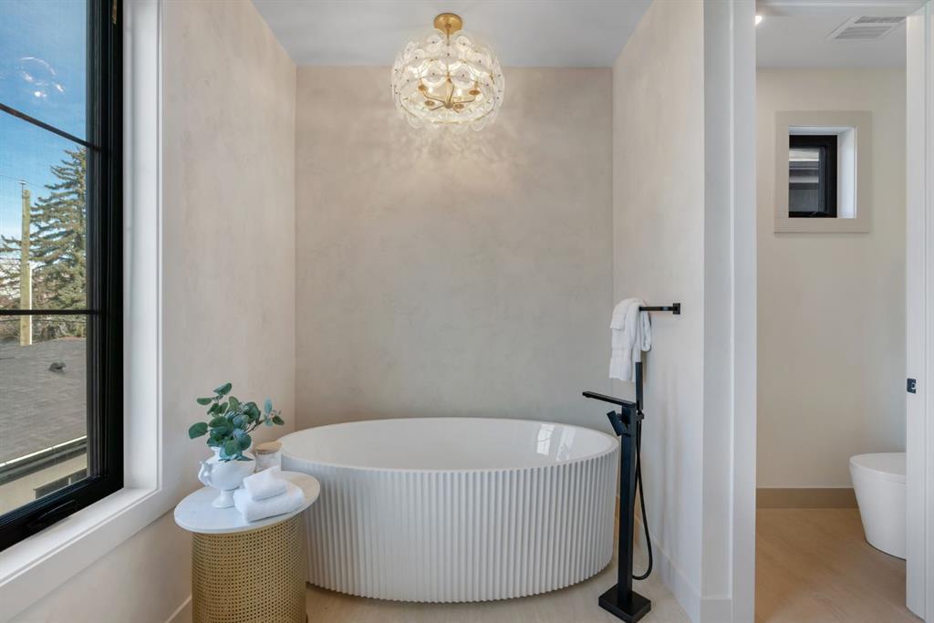 Located on one of Altadore’s most desirable streets, this brand-new custom residence by Jerry Homes with architectural design by aalstudios offers over 4,200 total square feet of expertly finished living space, seamlessly combining classic architectural elements with a refined modern aesthetic. The exterior makes a striking first impression with its rich red brick, wood siding, and carefully placed accent lighting that enhances the home’s bold yet sophisticated presence. Inside, the main level is defined by soaring 11’ ceilings, oversized windows, and wide-plank hardwood flooring, beginning with a welcoming foyer that leads to a beautifully designed front office or study featuring large south-facing windows and custom built-ins, alongside an elegant dining area highlighted by arched millwork details. The living room is anchored by a multi-tiered fireplace finished in textured sand paint and connects effortlessly to the backyard through oversized sliding doors that flood the space with natural light, while a bright breakfast nook with custom oak cabinetry also provides direct access outside. The kitchen is a true showpiece, complete with full-height oak cabinetry, hood fan finished in textured sand paint, a large quartz island with fluted detailing and curved toe kicks, a walk-in pantry, and a premium built-in appliance package including Sub-Zero and a 48” gas Wolf stove. A designer powder room and a thoughtfully designed mudroom with custom millwork complete the main floor. The upper level features three generously sized bedrooms, each with its own ensuite, along with a versatile den enhanced by large south-facing windows. The primary suite offers a luxurious retreat with twelve-foot tray ceilings, expansive windows, and a spa-inspired ensuite finished entirely in textured sand paint, showcasing a curved glass shower, a freestanding fluted soaker tub, dual vanities, in-floor heating, steam shower, and two spacious walk-in closets, including one with a dedicated makeup vanity. The secondary bedrooms are equally well-appointed with walk-in closets and elegant en-suites, while a fully equipped laundry room with built-in cabinetry and a sink adds everyday convenience. The fully developed basement continues the home’s elevated design with a large recreation area, in-floor heat, a custom wet bar, built-in shelving, a glass-enclosed gym, a custom wine room, a spacious guest bedroom, and a full bathroom. Additional features include rough-ins for security cameras, and integrated speakers throughout. The exterior will be completed with professional landscaping, and also features a rare triple detached garage. Located just steps from parks, schools, and the amenities of Marda Loop, this exceptional home offers a perfect balance of luxury, functionality, and inner-city living. Call today to book your private tour.