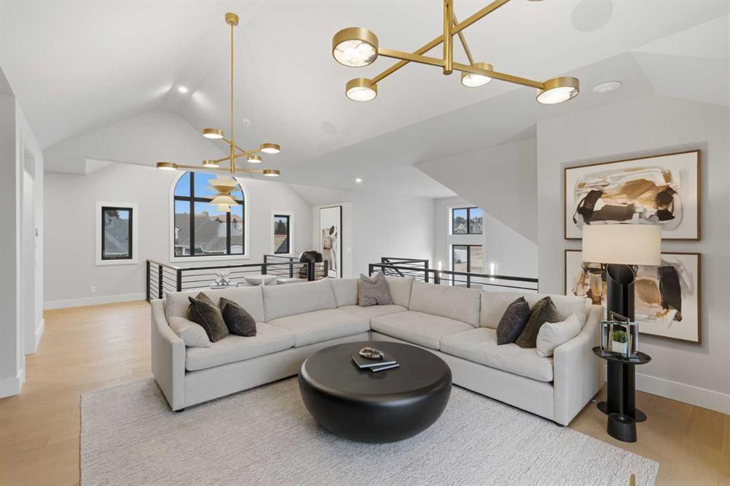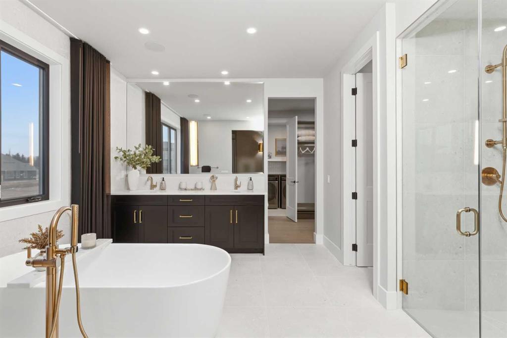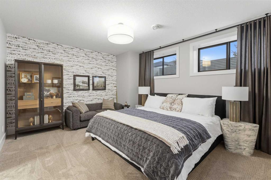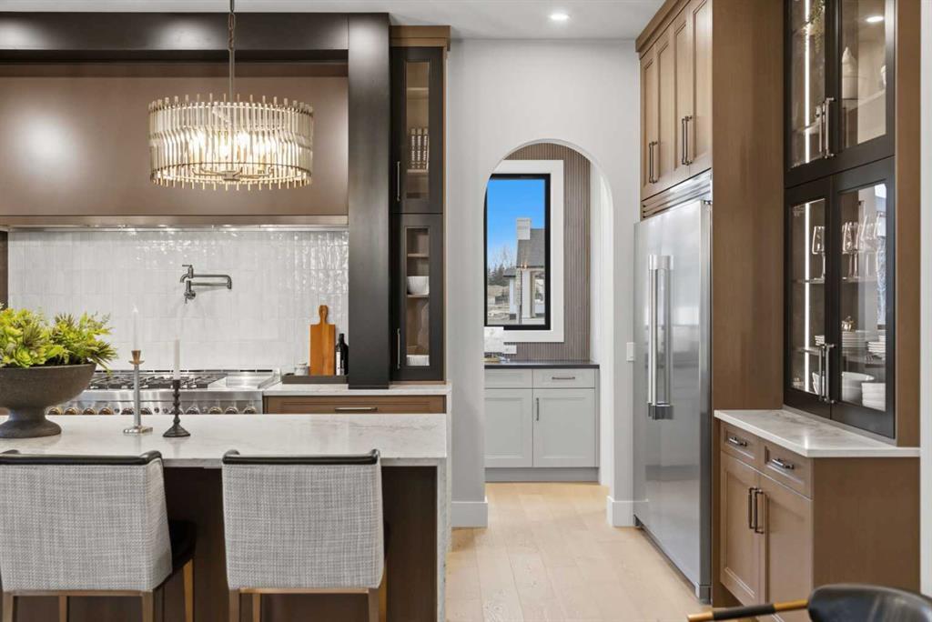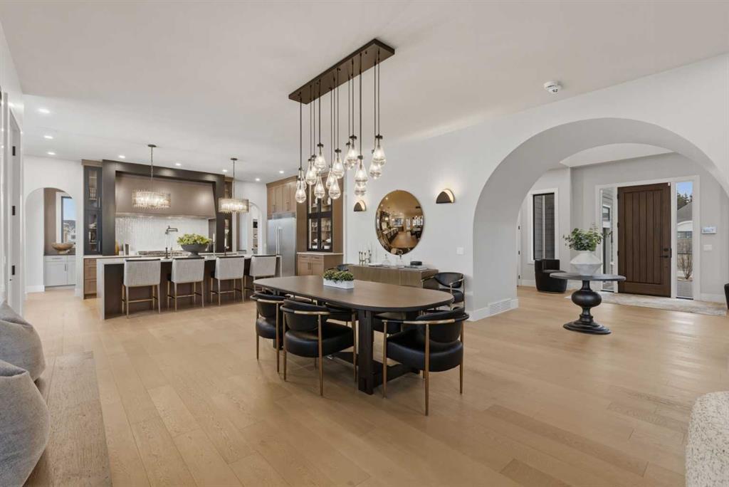 A rare opportunity to own a former Crystal Creek LOTTERY HOME in Watermark, offered FULLY FURNISHED and completely turn key, where every detail has been professionally curated and included. Set on a large lot with a sunny south facing backyard, this 5,652 sq ft fully developed luxury home with triple car garage makes an immediate impression. Soaring open to above ceilings, full height windows, and a statement fireplace define the main living space. The main level flows effortlessly through a designer kitchen with oversized island, premium appliances, butler’s pantry, and an elegant dining area framed by architectural arches and custom lighting, while a private office, functional mudroom, and thoughtful storage round out the floor. Upstairs, the primary retreat feels like a boutique hotel, complete with a spa inspired ensuite with in-floor heating, freestanding tub, oversized shower, fully built out walk in closet, and a private balcony overlooking the south facing yard, a quiet spot for morning coffee or winding down at the end of the day. Additional bedrooms offer their own character and access to ensuites, while the upper lounge overlooks the great room below, creating a bright and open second living space. The fully developed basement is designed for entertaining with a large rec room, bar, gym or flex space, and guest bedroom. Built for comfort and efficiency, this home features dual furnaces, dual A/C units, tankless hot water, HRV system, water softener, audio system, Wi-Fi extenders and full new home warranty coverage for complete peace of mind. Outside, the property features Gemstone lights, is fully landscaped with irrigation system and ready to enjoy from day one. Located just outside Calgary, the prestigious community of Watermark offers estate living with quick access to the city, mountain views, pathways, and a level of privacy that is increasingly hard to find. Homes of this caliber, fully finished and furnished, rarely become available. Book your private showing and experience it in person.