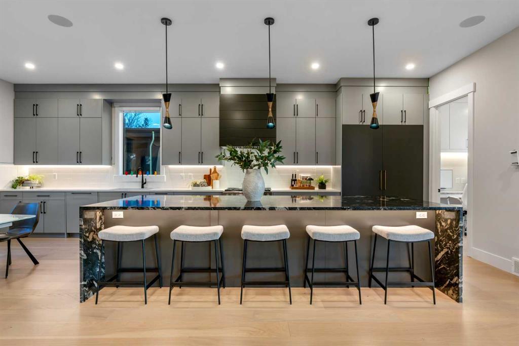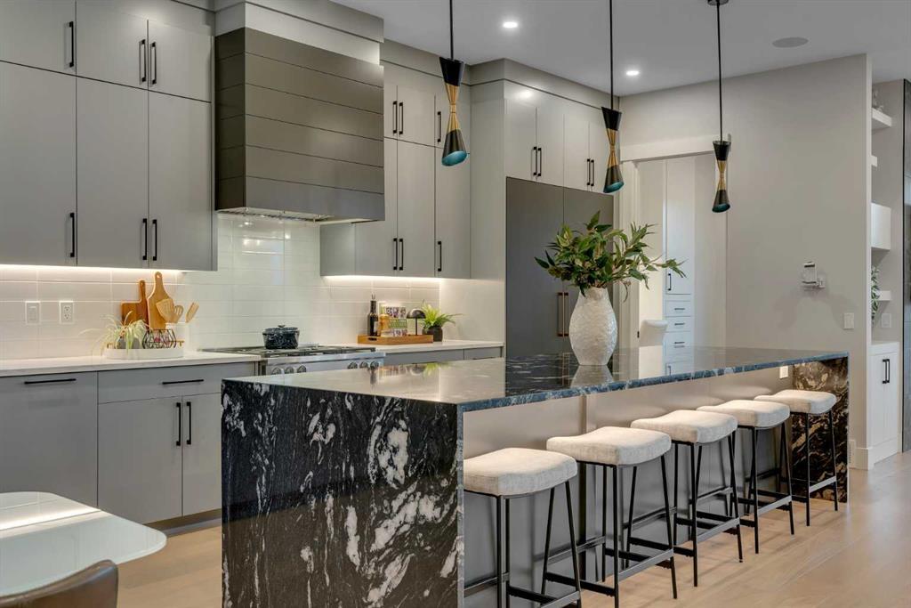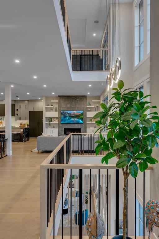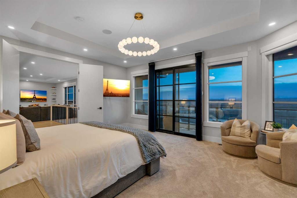 *Watch the video* Dreams do come true. Welcome to one of the most exceptional and rarely available luxury homes in prestigious Springbank Hill—a stunning custom residence on a 80 FT wide lot that truly redefines elevated living. Showcasing breathtaking panoramic mountain views and unforgettable Rocky Mountain sunsets, this extraordinary property offers over 6,600 SQ FT of beautifully designed living space . Mountain Views | Over 6600 SQFT | Elevator | Solar Panels | Heated Garage + Driveway | Upgraded Insulation | 5 Bedrooms (4 with ensuites) | 2 Private Dens | Home Theatre + Gym | Multiple Living Areas | 4-Car Heated Garage | Designer Finishes | Chef’s Dream Kitchen | Butler’s Pantry + Prep Kitchen | Private Lounge | Spa-Inspired Ensuite | Expansive Wraparound Balcony | Statement Lighting | Smart Home Automation | Walkout Basement | As you step inside you are greeted by a spectacular open-to-below foyer soaring approximately 30 feet, creating a rare sense of scale and elegance. Thoughtfully designed for both relaxation and upscale entertaining, this home features an elegant lounge with soaring 14-foot ceilings, built-in speakers, and ambient lighting that enhances the refined atmosphere. A custom-designed bar with sleek stone countertops, gold hardware, and backlit shelving serves as a true showpiece. This level also offers a private den, dedicated gym, fully equipped home theatre, and a spacious bedroom with a walk-in closet and full bathroom. Upstairs, the wide illuminated staircase adds a striking architectural touch. The main floor is flooded with natural light from expansive windows, creating a warm yet sophisticated feel. The great room impresses with floor-to-ceiling tile detail, a fireplace, and custom built-ins. A second den provides flexibility for work or study. The chef’s kitchen is a true centerpiece—featuring an oversized waterfall island, top-of-the-line appliances, full-height cabinetry, elegant countertops, designer lighting, and extensive storage. A butler’s pantry and secondary prep kitchen complete with gas stove and additional appliances make this home ideal for entertaining. The upper level offers a spacious bonus room and four generously sized bedrooms, each with its own ensuite and walk-in closet. The primary retreat is further enhanced by a massive walk-in closet featuring custom built-in shelving, offering both style and exceptional organization. The well-appointed laundry room is designed with functionality in mind, complete with generous counter space, ample cabinetry, and a convenient sink. A spacious bonus room provides the perfect setting for movie nights Additional highlights include smart home automation, powered blinds, irrigated landscaping, and a wraparound south-facing deck—perfect for summer entertaining.This home presents an extraordinary opportunity to own a modern and elegant home with astonishing mountain views.This is more than just a home—it is a statement of luxury, craftsmanship, and lifestyle all combined together.