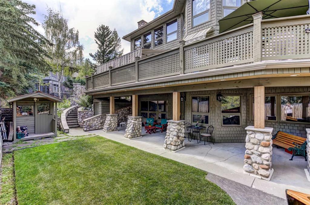 Elevated Mountain Living in a Custom-Built Estate, Perfectly Situated Steps to the Banff Springs Hotel and Scenic Bow River. Experience refined mountain living in this exceptional custom-built residence, perfectly positioned on a premium corner lot in one of Banff’s most sought-after locations. Designed with both elegance and functionality in mind, this stunning home offers 4,776 sq ft of thoughtfully curated living space on 3 levels, ideal for families, entertainers, or those seeking a luxurious alpine escape. The upper level features four spacious bedrooms, creating the perfect family layout, while the main floor showcases a private office, ideal for remote work or quiet retreat. Throughout the home, four fireplaces add warmth and ambiance, complementing the timeless mountain-inspired design. The heart of the home opens to a large, south-facing deck, where you can soak in all-day sun and breathtaking surroundings—perfect for entertaining or relaxing after a day in the mountains. This property also offers a fully developed walkout accessory dwelling unit with two bedrooms, providing excellent flexibility for extended family, guests, or potential rental income.